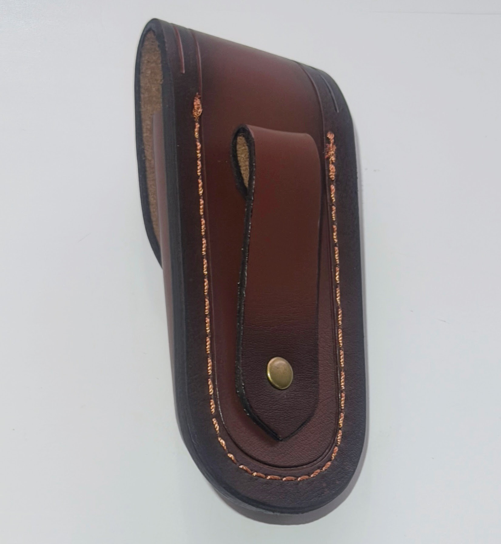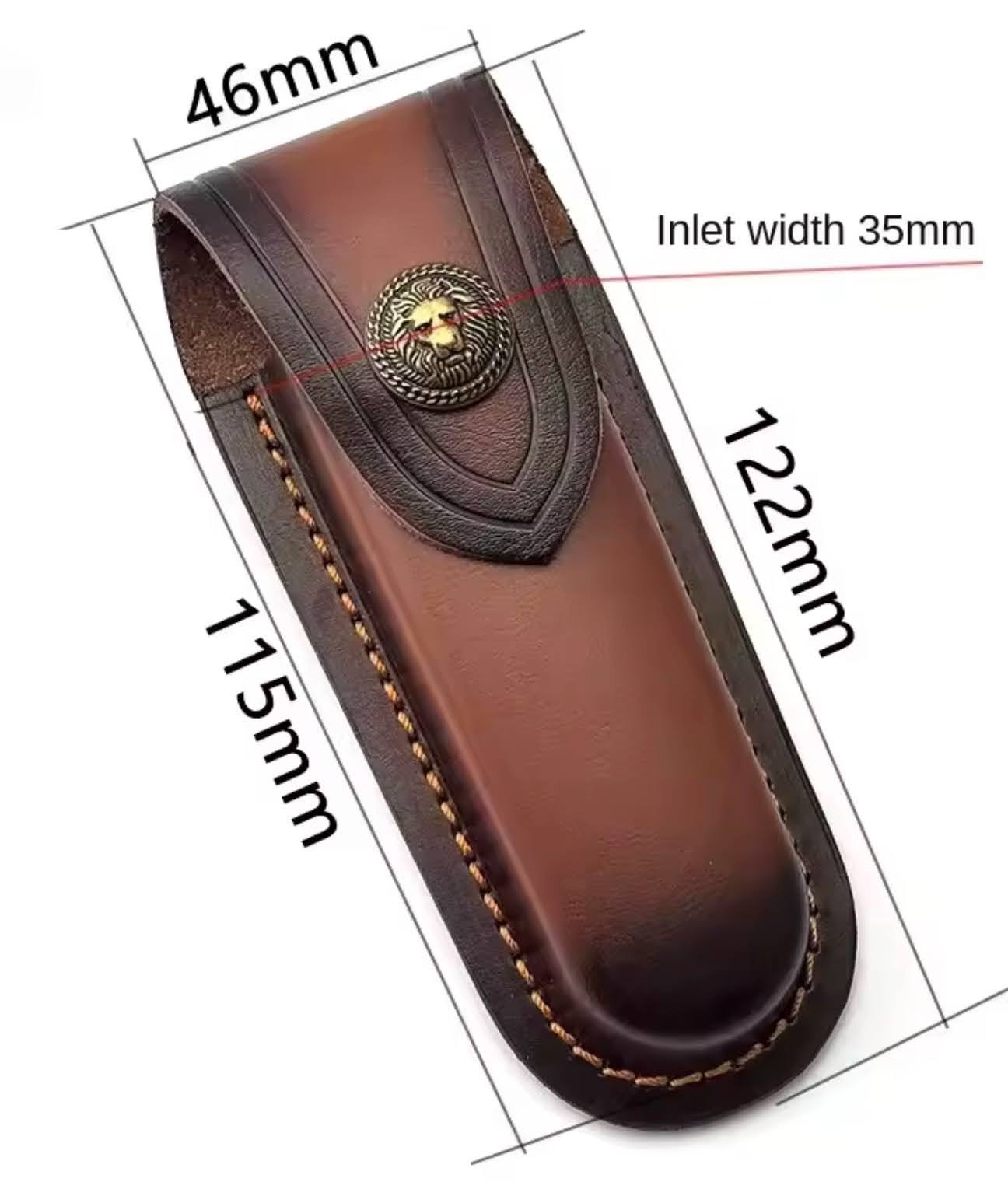 Красивий та приємний чохол з коричневої шкіри (заявлено виробником і наче дуже схоже) під невеликий фолдер (складаний ніж) або мультитул.