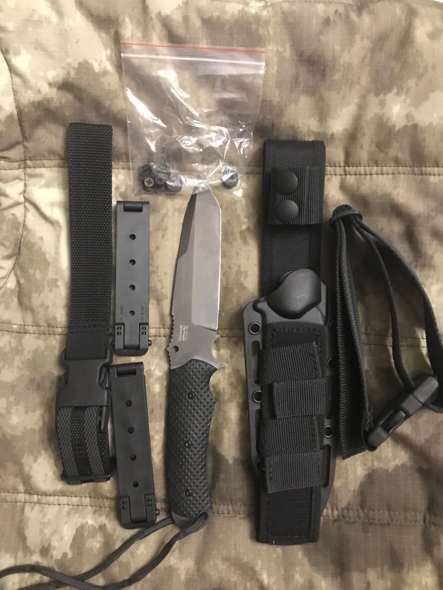 В комплекте вместе с ножом Combative Edge SALUS поставляются ножны и крепление которое позволяет закрепить ножны на ноге или руке. Ножны выполнены из термоформованного пластика kydex и Cordura.