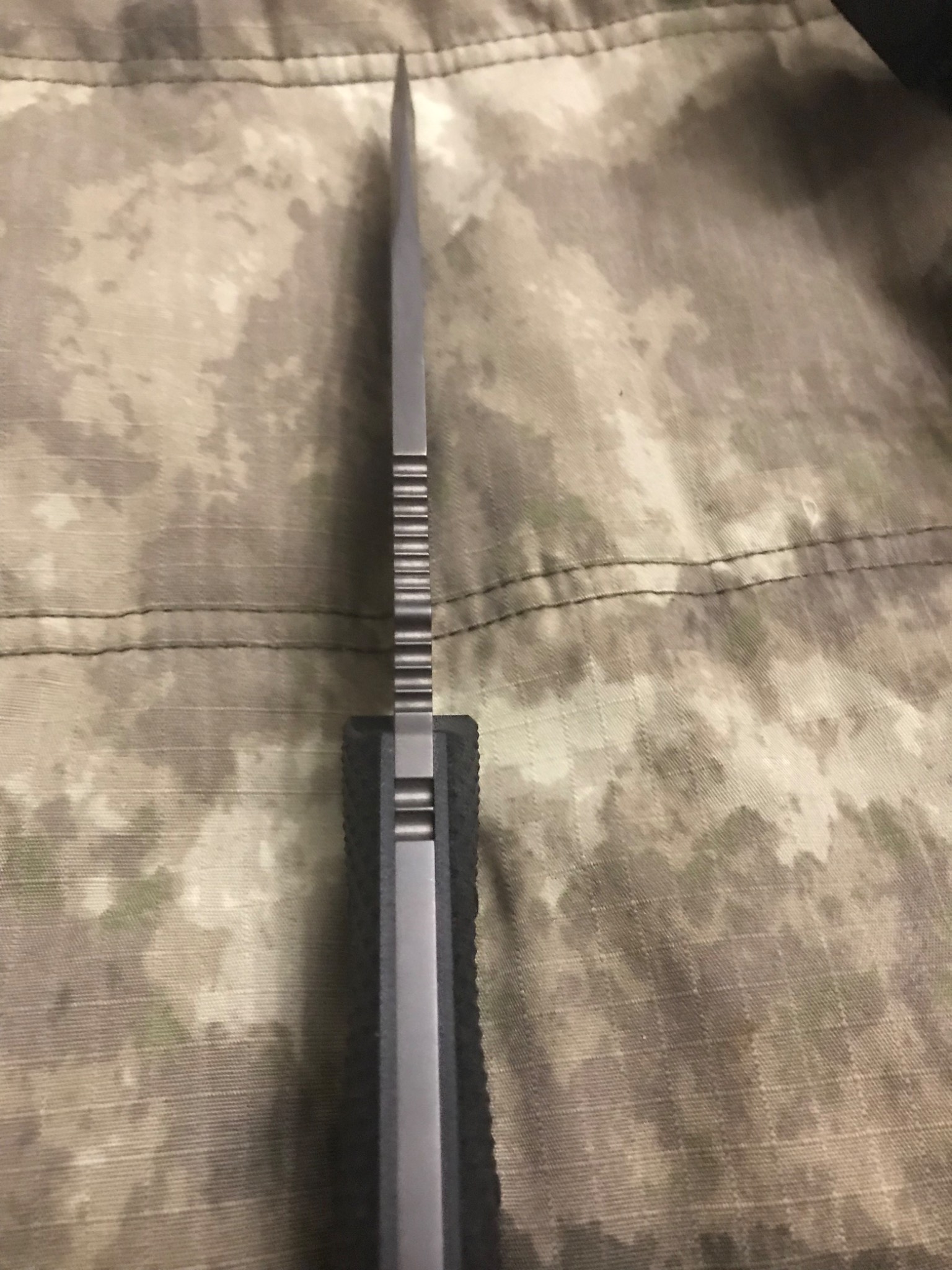 Рельефные накладки рукоятки выполнены из синтетического материала G10.