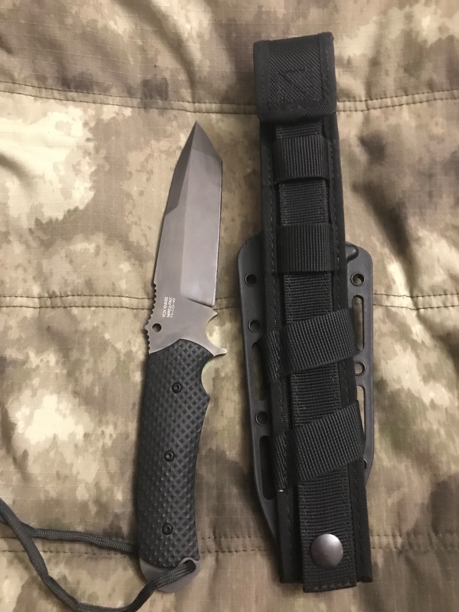 В комплекте вместе с ножом Combative Edge SALUS поставляются ножны и крепление которое позволяет закрепить ножны на ноге или руке. Ножны выполнены из термоформованного пластика kydex и Cordura.