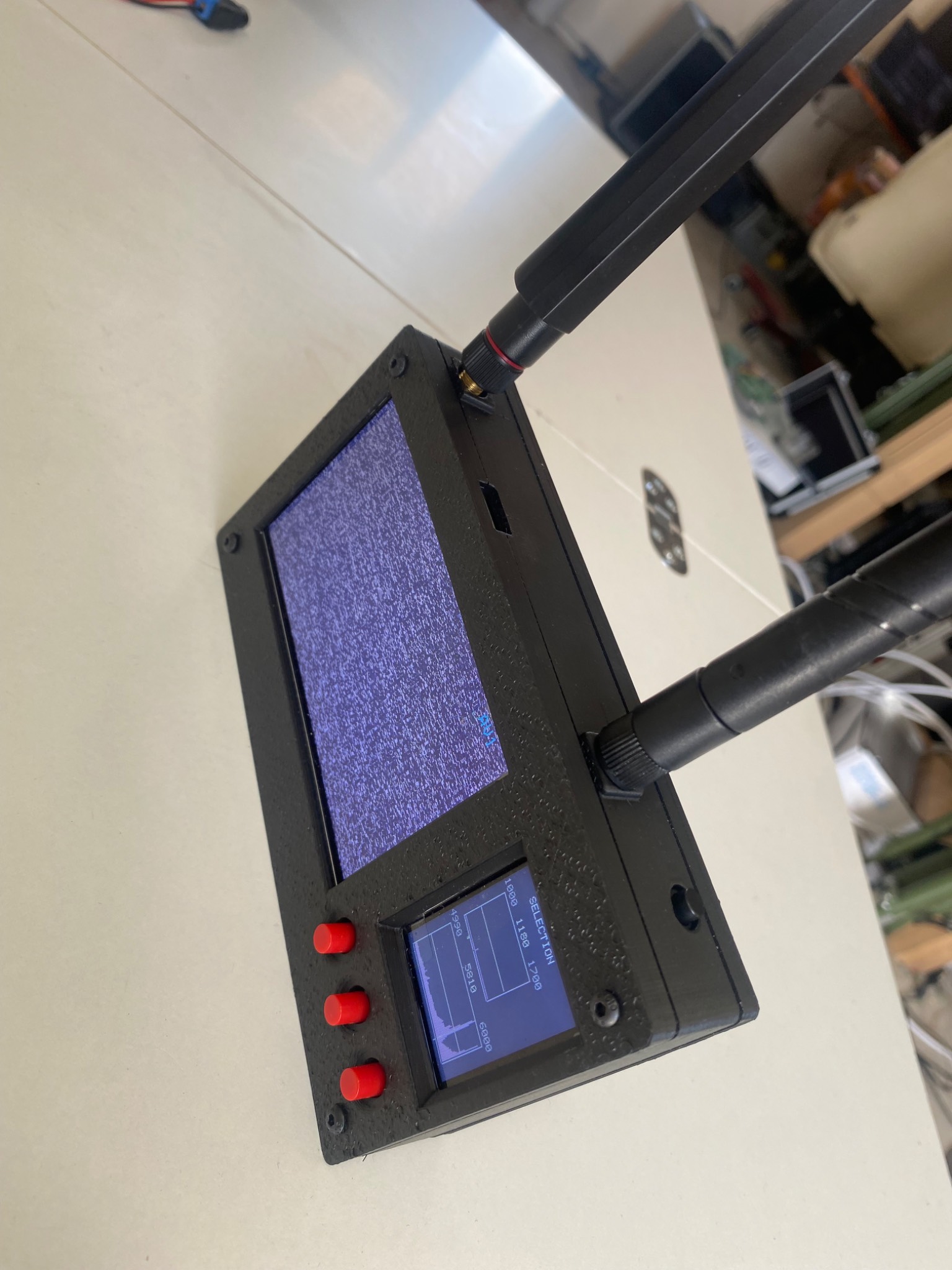 Детектор дронів по відео з fpv частоти 1000-1700,5000-6000мгц відстань від 3-4км . Живлення на 6.5годин