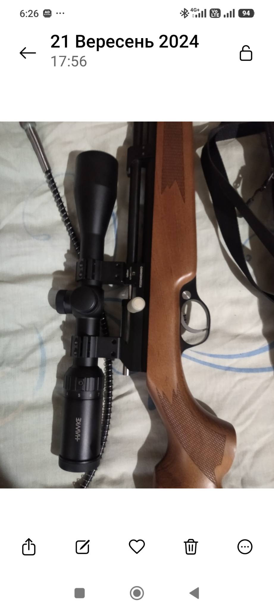 В iдеалi, настрiл пачка куль, пристрiляна з 10 м в спiчку i 10 коп попадав, комплект на фото присутнiй i ремкомплект, Пересилаю по повнiй предоплатi, особиста зустрiч, як зручно вам ! 20000гр без торгу! Продам тому що немає потреби в ній , більше лежить без користування! Пишіть кому цікаво, вайбер телеграм, 0673765801