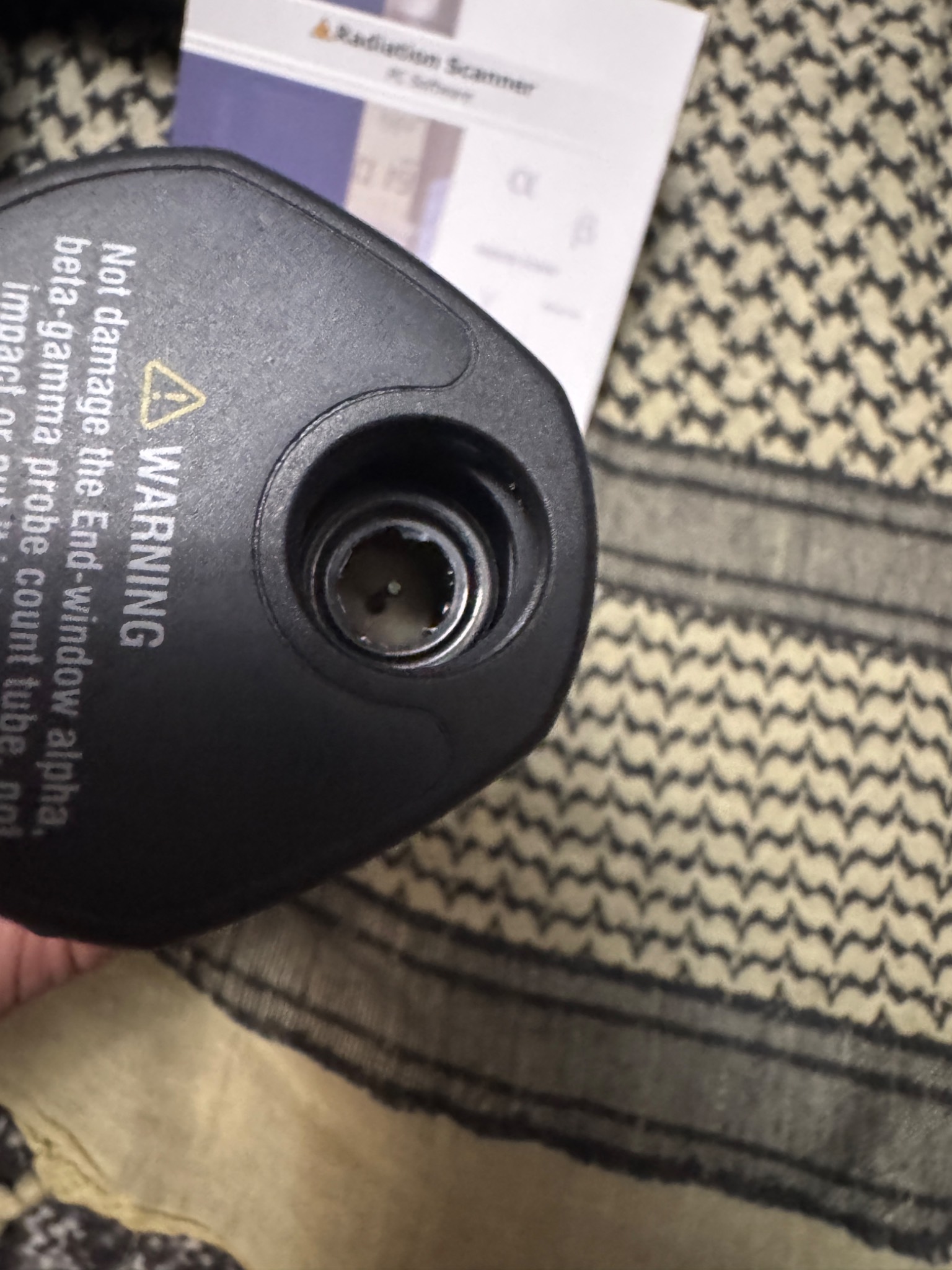 Джерело живлення - робоче. Прилад функціонує. На жаль в наслідок помилкової дії відбулось ушкодження захисної мембрани на поворотній позиції “альфа-, бета- та гама-” показав на фото.