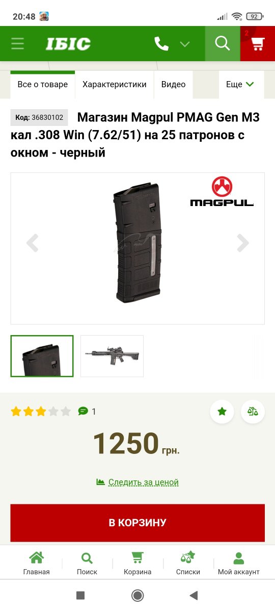 Мисливський карабін який не потребує реклами. Заточений як треба, настріл смішний від сили дві пачки. До всього, маю дві пачки патронів, високоточні та дозвукові.