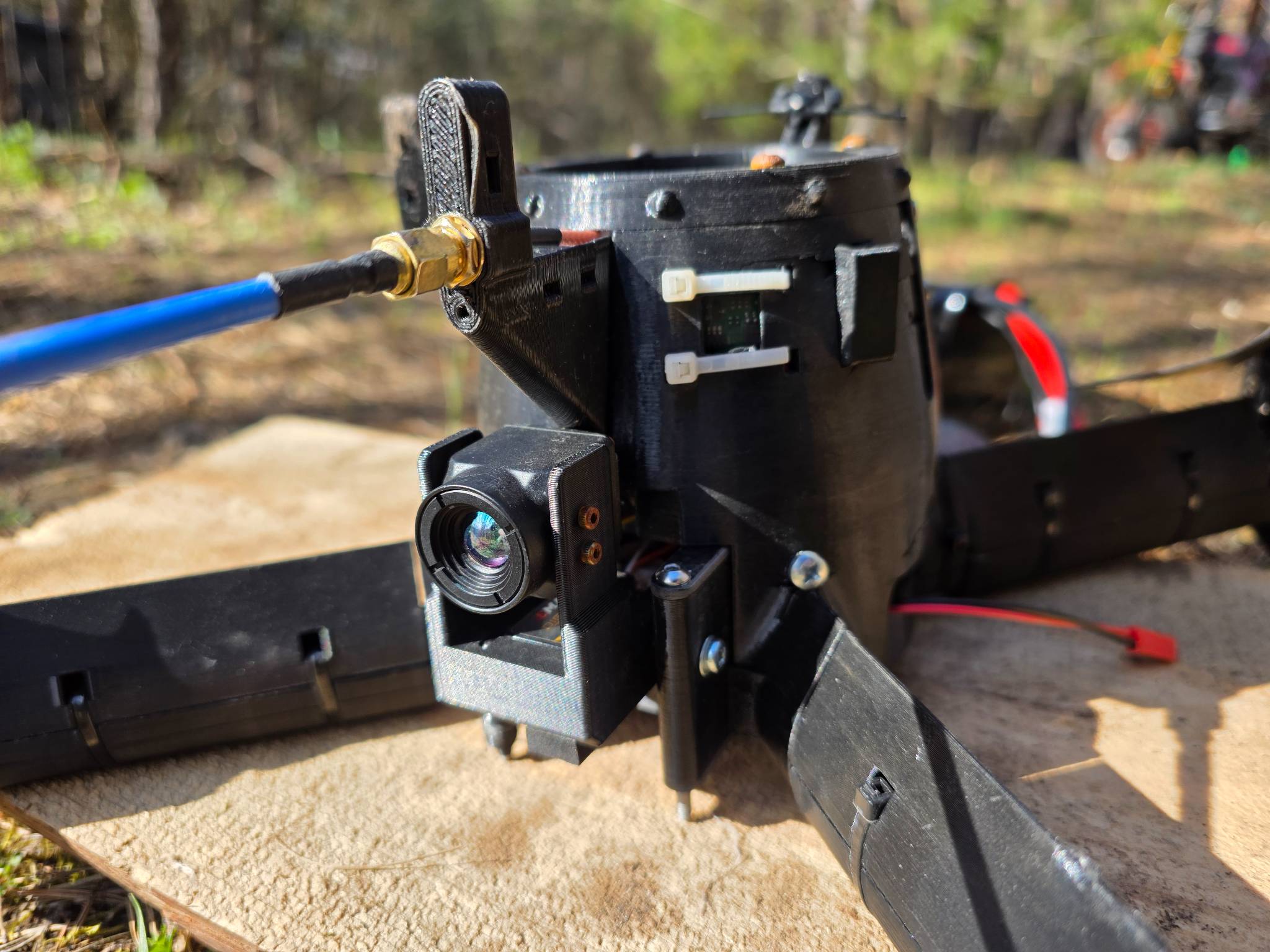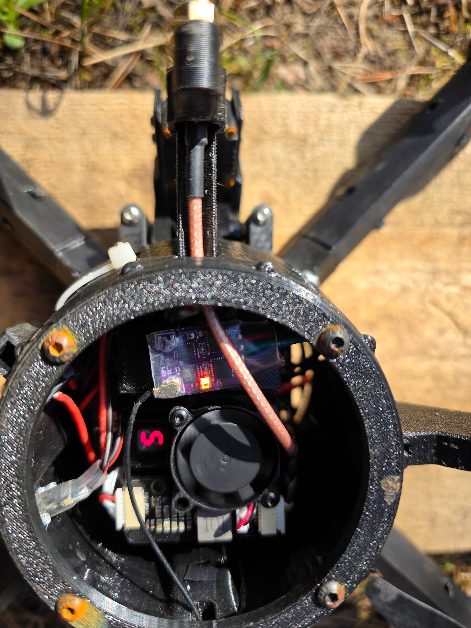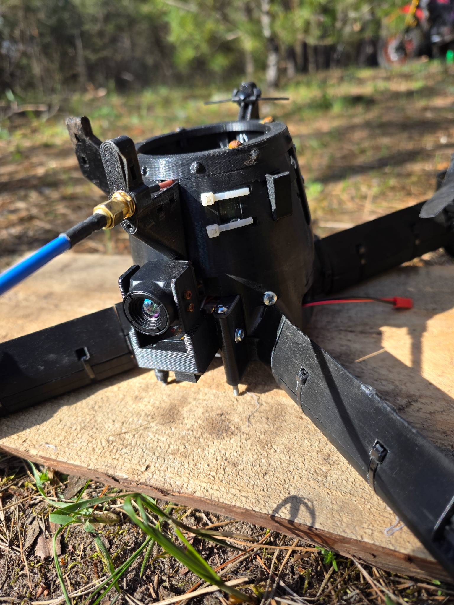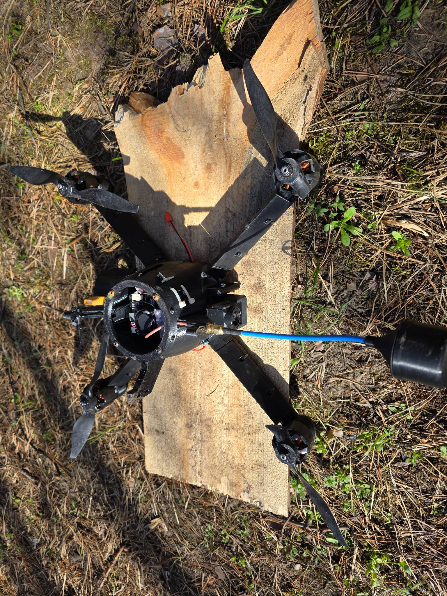 Дрон перехоплювач з тепловізійною камерою, повністю робочий але без елементів корпусу, рама ціла. Через бетафлай все бачить, калібрує, мотори жучать. Батерея робоча повністю, збалансована. Чуть допрацювати корпіс і можна леліти.