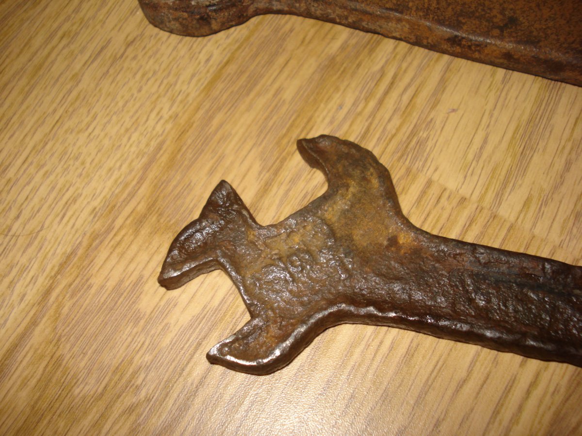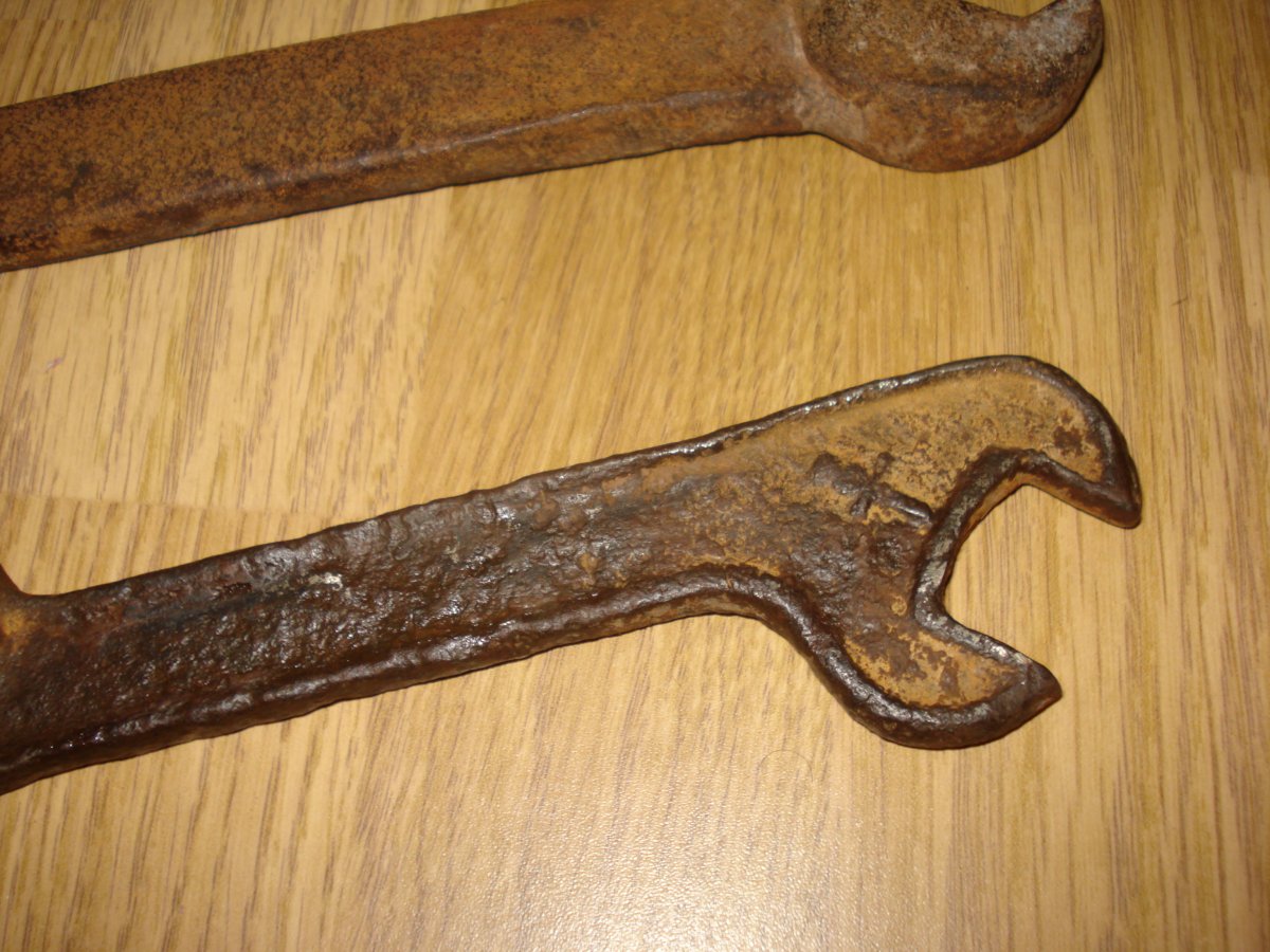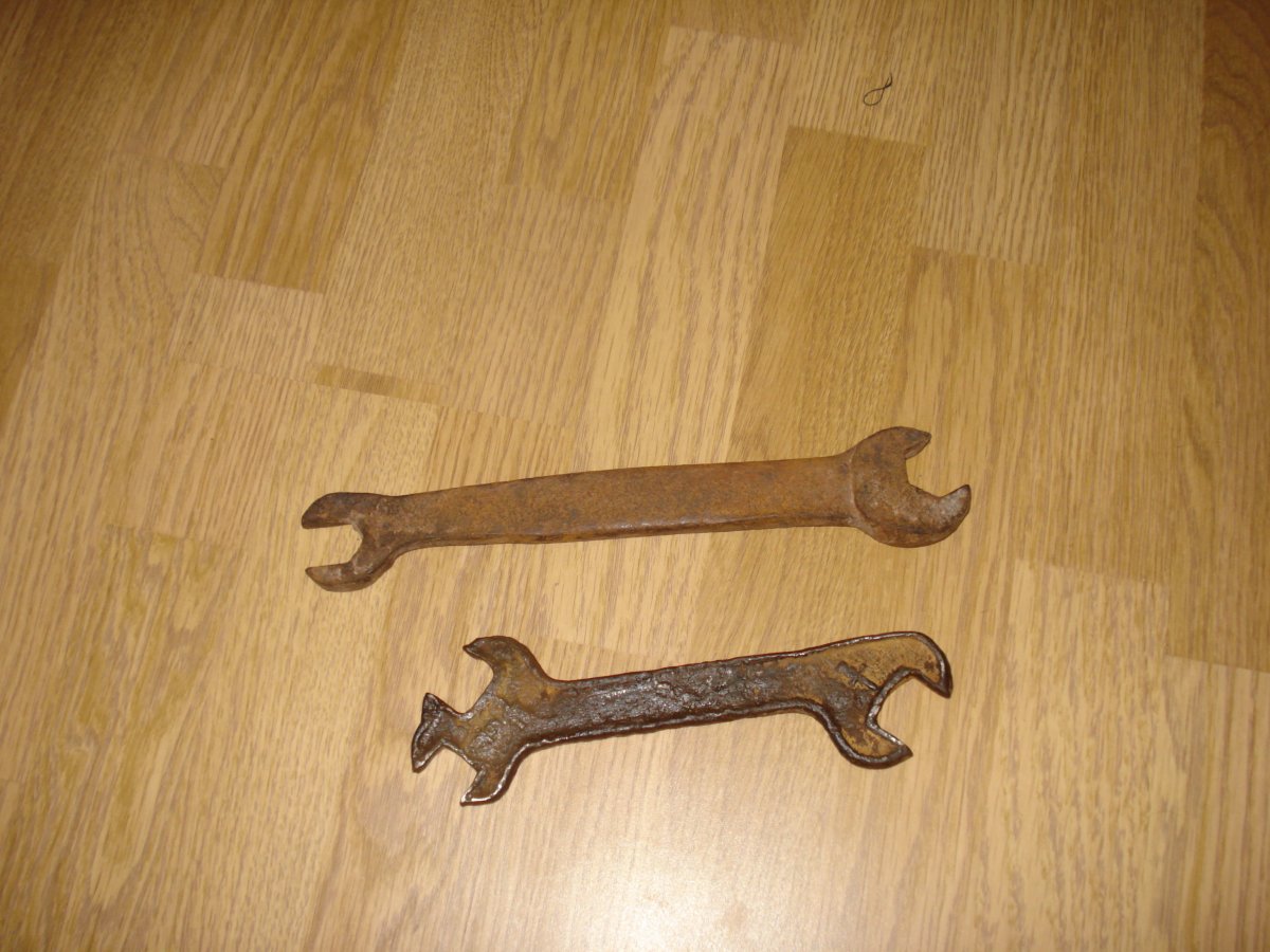 два ключа с позиций.ключи дореволюционные.один--ключ под дюймовый шестигранный крепеж тройной .второй--похоже кованый.