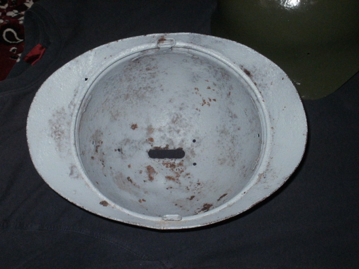С каской Адриана не делал ничего ,какая попалась ,такая и есть ,Халлинголка реставрировалась ,по фото видно ,ремонтировал методом пайки латунью , что является более лучшим соединением для углеродистого металла , Произведена чистка ,пайка , обработка преобразователем ,грунтовка ,шпаклевка ,покраска.метал хороший.Гребень новодел