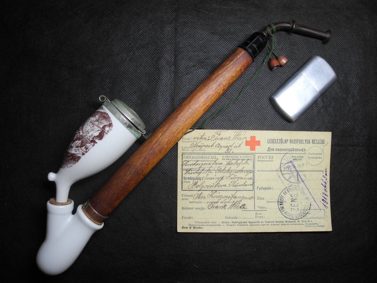 Егерьская курительная трубка, зажигалка, карточка военнопленного на ПМВ. Новий