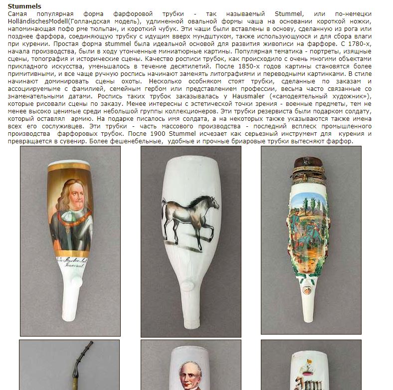 1. Трубка курительная (егерьская, с фарфоровым чубуком и чашей, мундштук эбонитовый). На чаше изображен популярный в те времена сюжет из сцены охоты.