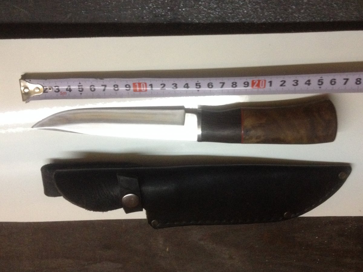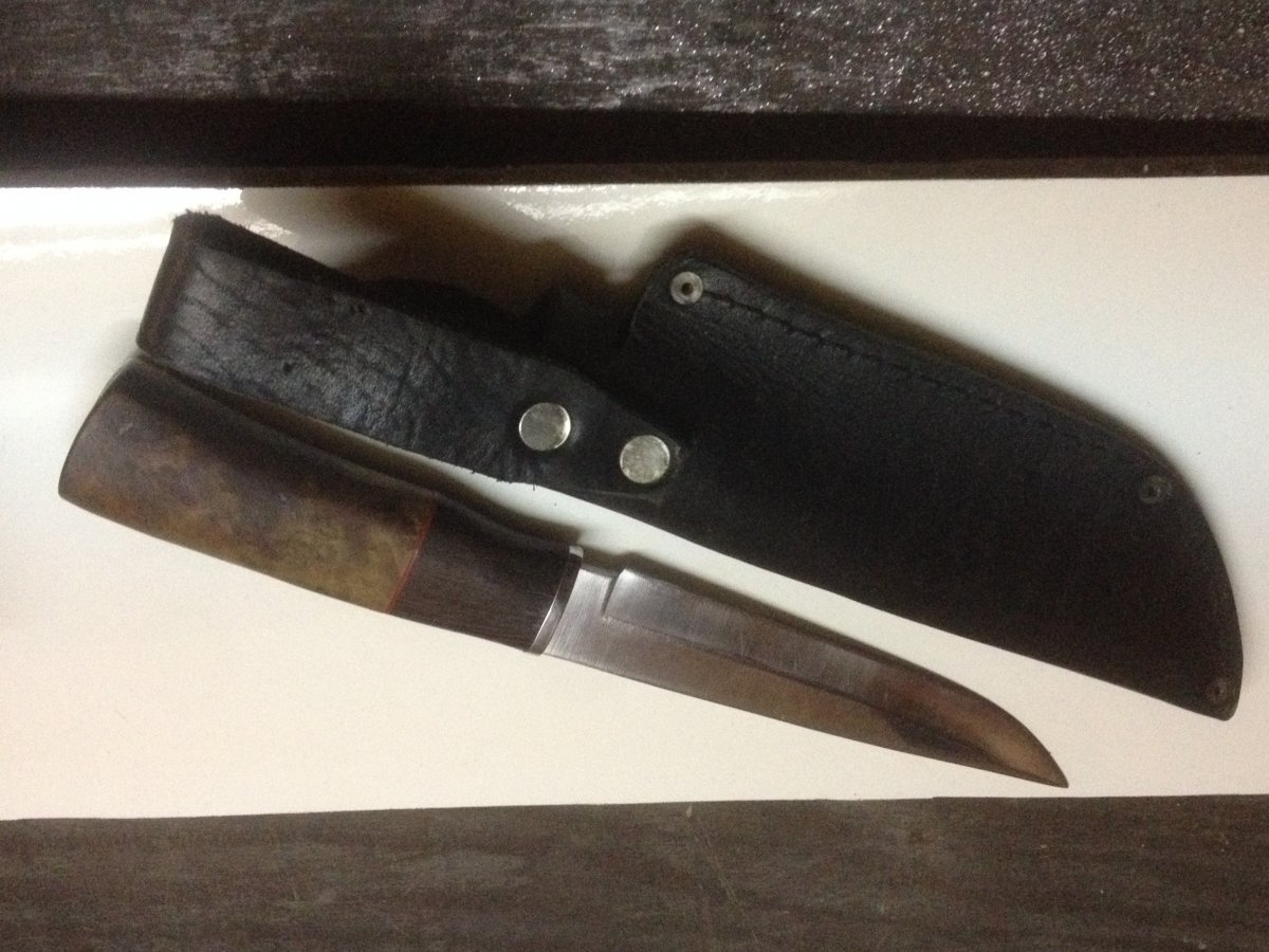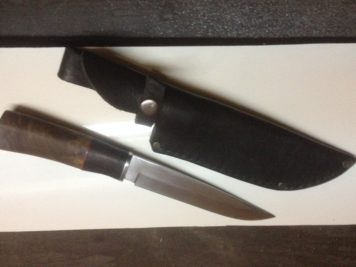 В продаже финка.Рукоядь-разборная.Дерево:карельская берёза и вишня.Сталь хирургическая,не ржавеет,марки не знаю.Нжны с толстой кожи 5мм.Сделана под заказ.Размеры на фото.