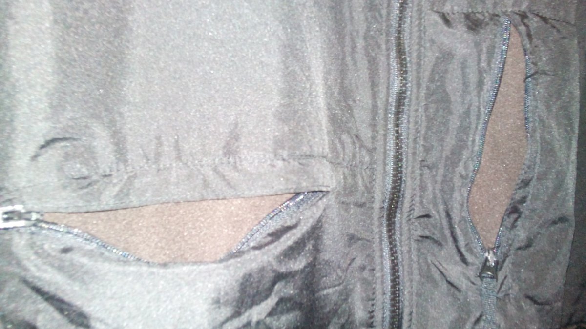 Карманы: на груди-слева вертикальный; справа-горизонтальный; внизу два объемных. Все на молниях.