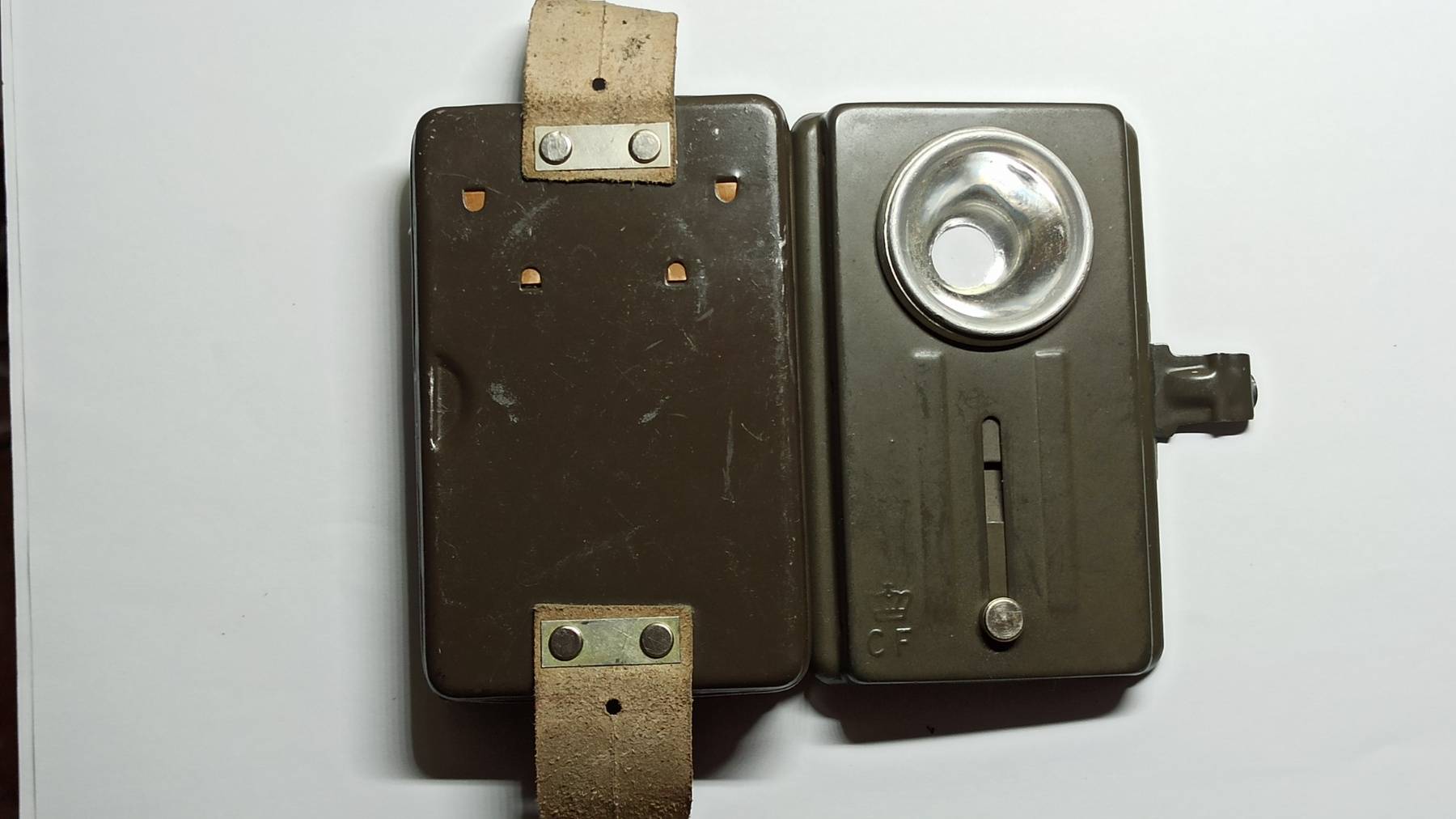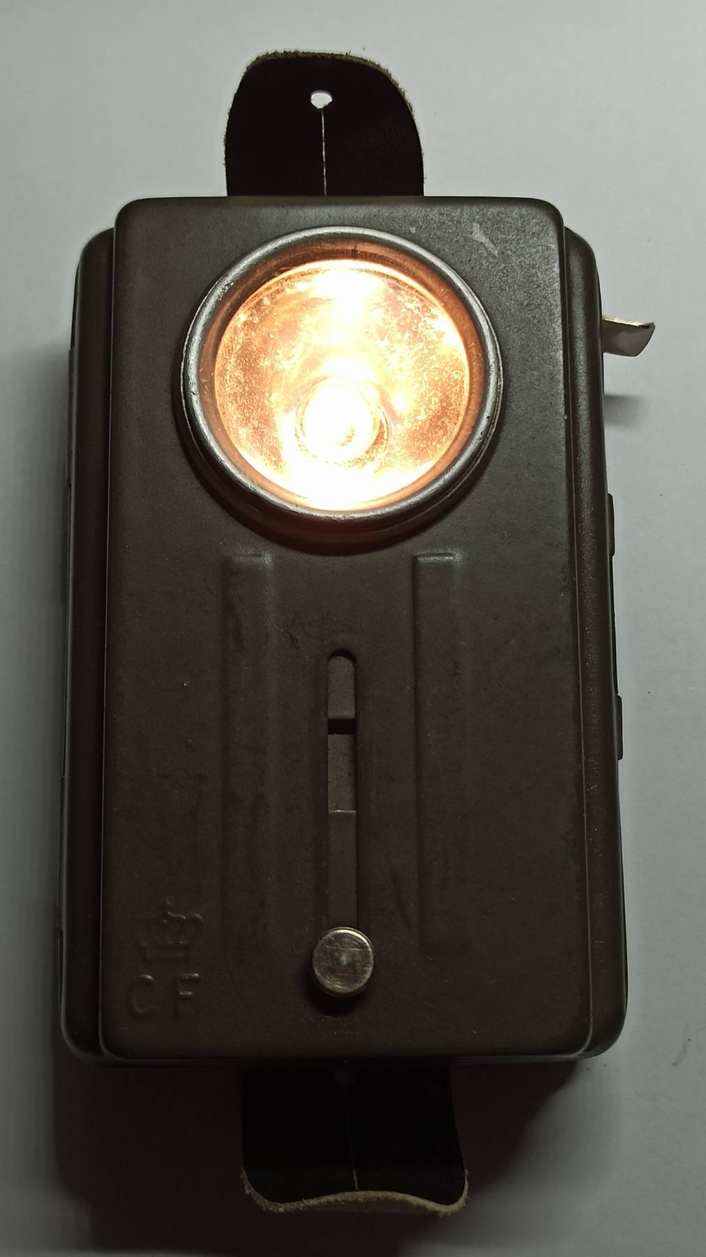- Фонарь (сигнальная лампа) с металлическим корпусом, имеет на передней панели один ползунок и встроенную шторку светомаскировки.