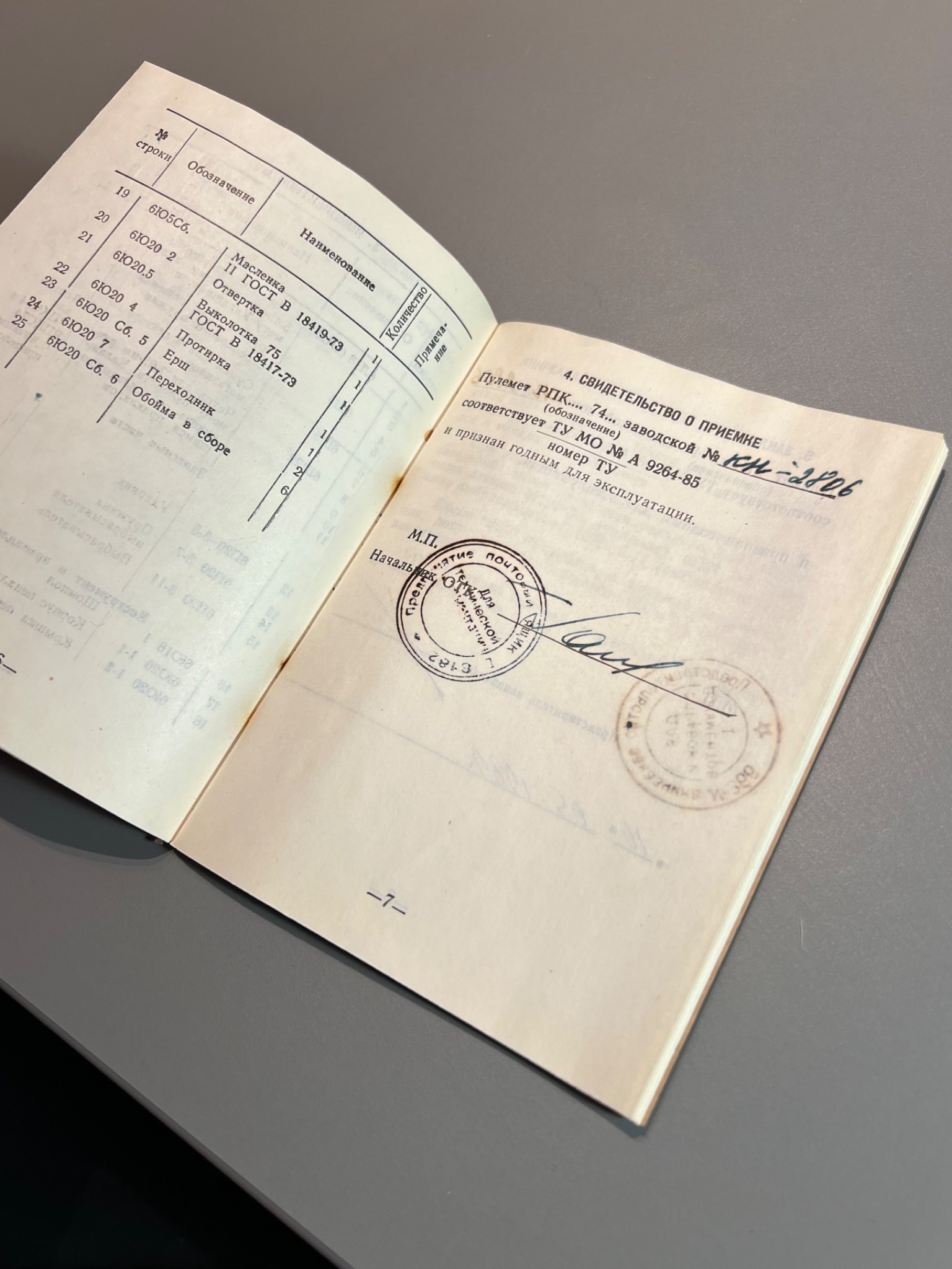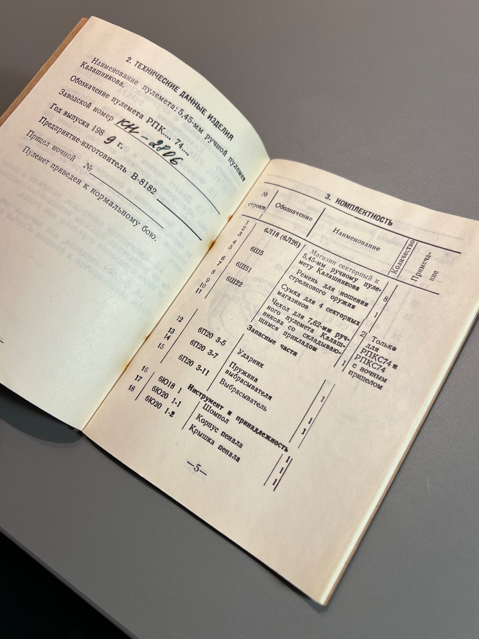 Формуляр ручной пулемет Калашникова