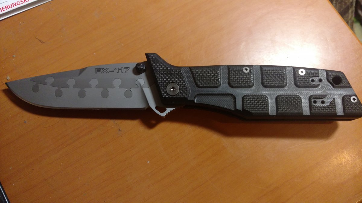 Новая инновационная разработка компании Fox, суть которой состоит в использовании двух независимых материалов в клинке, наглядно представлена в ноже Nighthawk. Сама режущая кромка изготовлена из стали N690Co кобальт ванадий, а торцовая часть – из титана 5-го класса. В результате имеем нож с футуристическим дизайном и отличными показателями реза. Благодаря австрийской стали N690Co кобальт ванадий, клинок чрезвычайно прочен и устойчив к кислотной и солевой коррозии, а благодаря титану – гибок. К тому же титан делает нож на 20% легче, что особо важно для тактических задач. На обухе клинка есть насечки для большого пальца, что обеспечивает надежное удержание. Рукоятка же сделана в так называемом «чешуйчатом стиле». Накладки сделаны из текстурированного стеклотекстолита G-10, а потому нож надежно лежит в руке. страна производитель Италия
