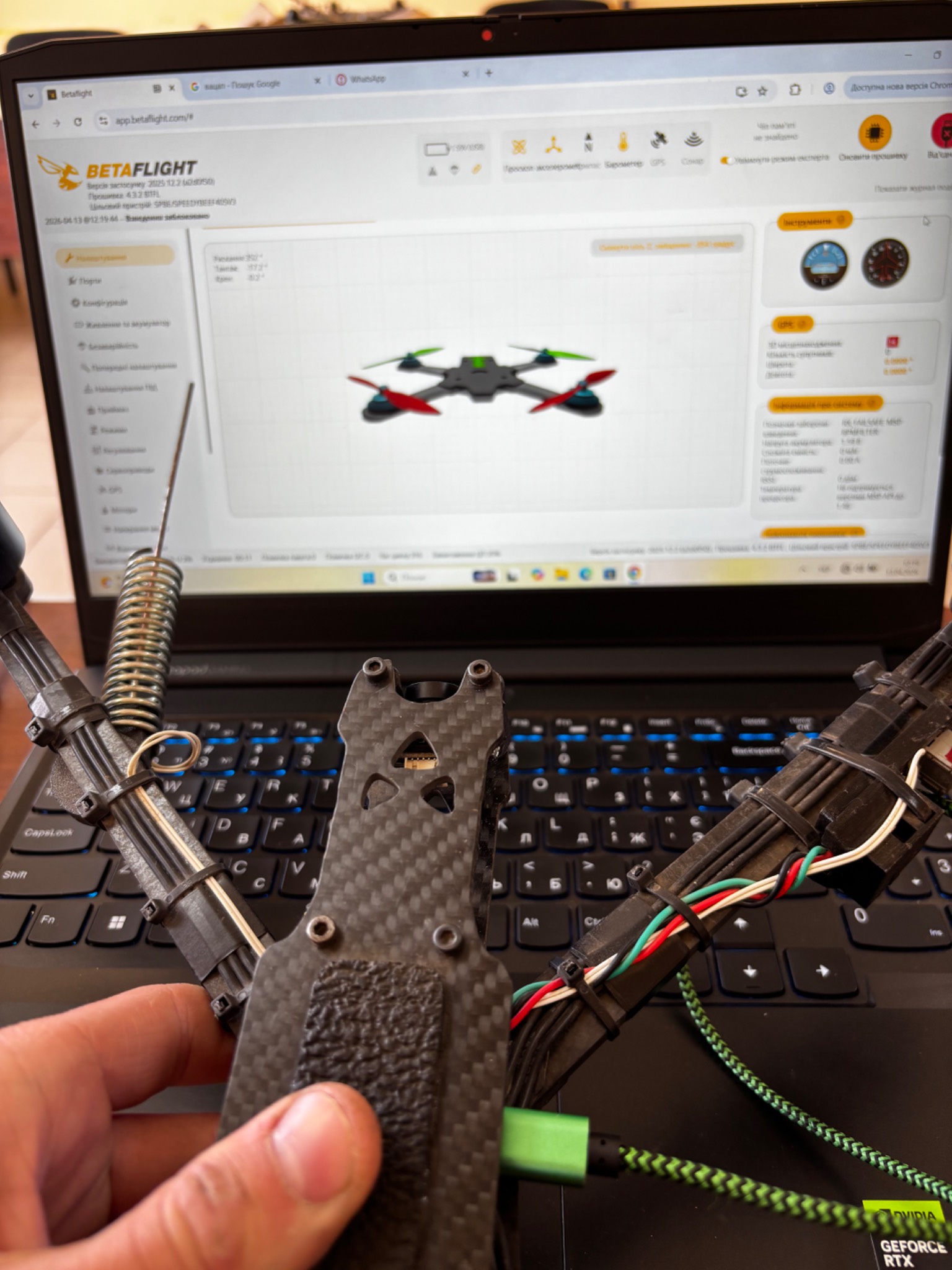 Вітаю FPV 10 на карбоновій рамі, все ціле, облітати не має фізично чим, на батку реагує, до бетафлай підключається, всі двигуни крутяться, без пошкоджень, тріщин та іншого, дивіться ініші мої лоти