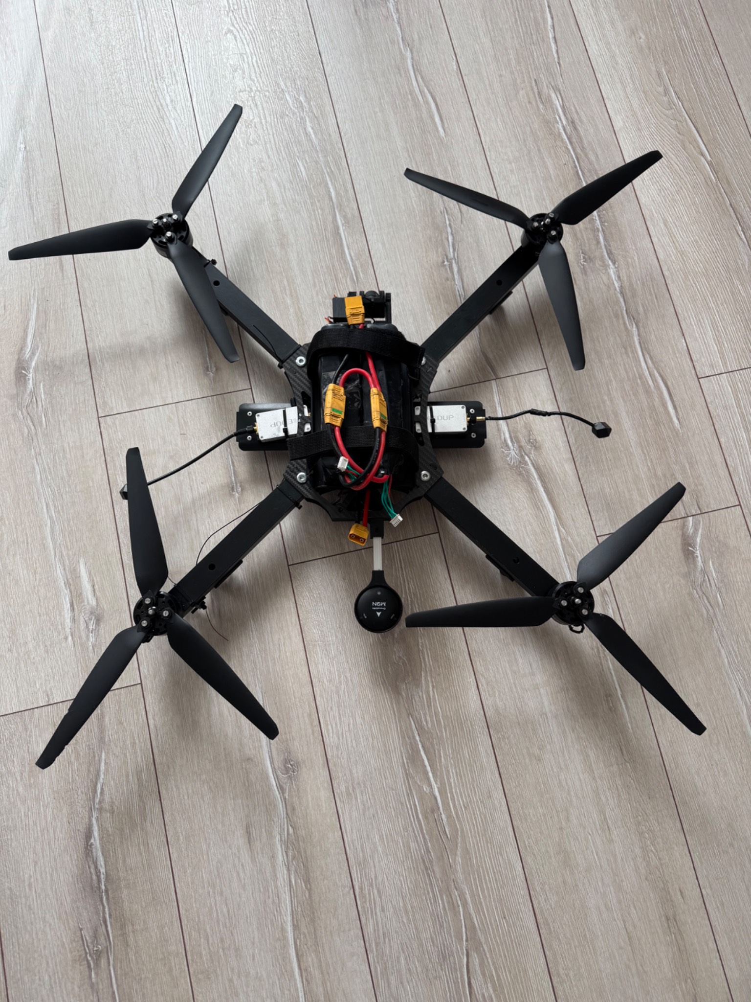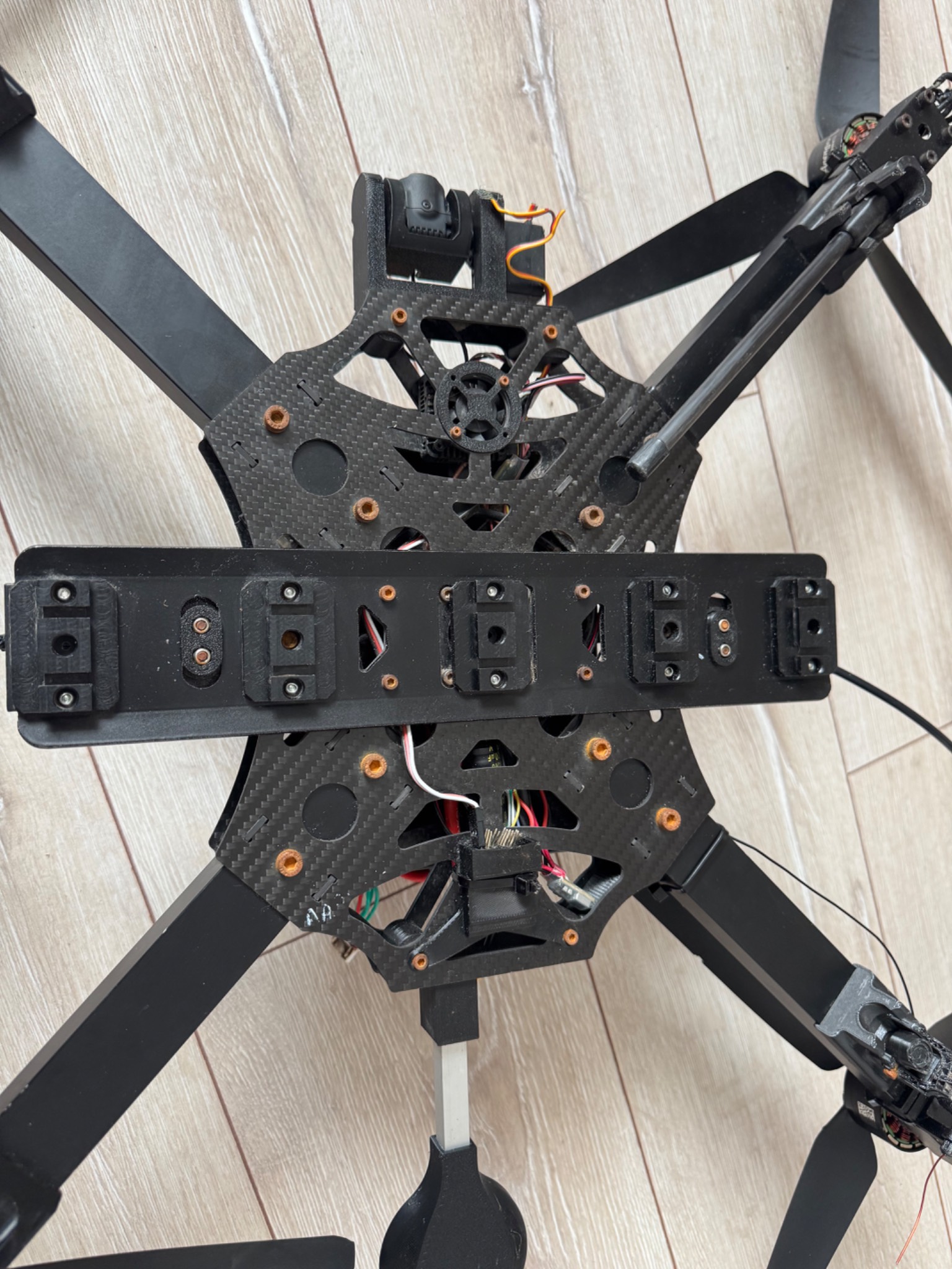 Продаж FPV BOMBER працездатність невідома , чудовий стан, плати , мотори все ціле, з пошкоджень відсутні 3 стійки, пошкоджені кріплення для скидів, незначні сколи лопастів. Розмір рами 50 на 50 сантиметрів, диагональ від центрів моторів 66 сантиметрів.