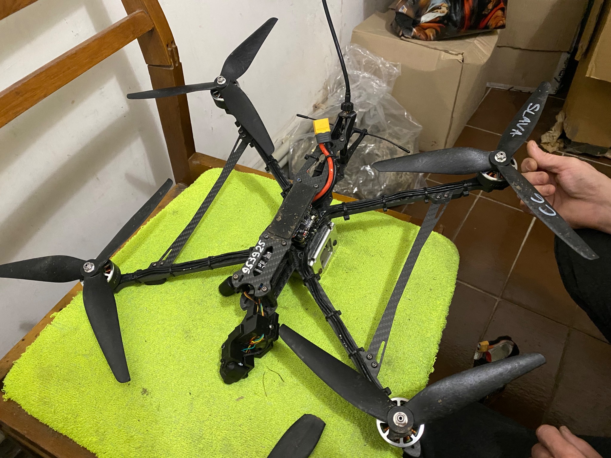 Камера caddx и dji 03 air unit model qfp2as. Видеопередатчик rushfpv max solo. Камера исправна, при подключении аккумулятора калибруется . (Переборщил с мощностью, теперь лопасти как на последнем фото)