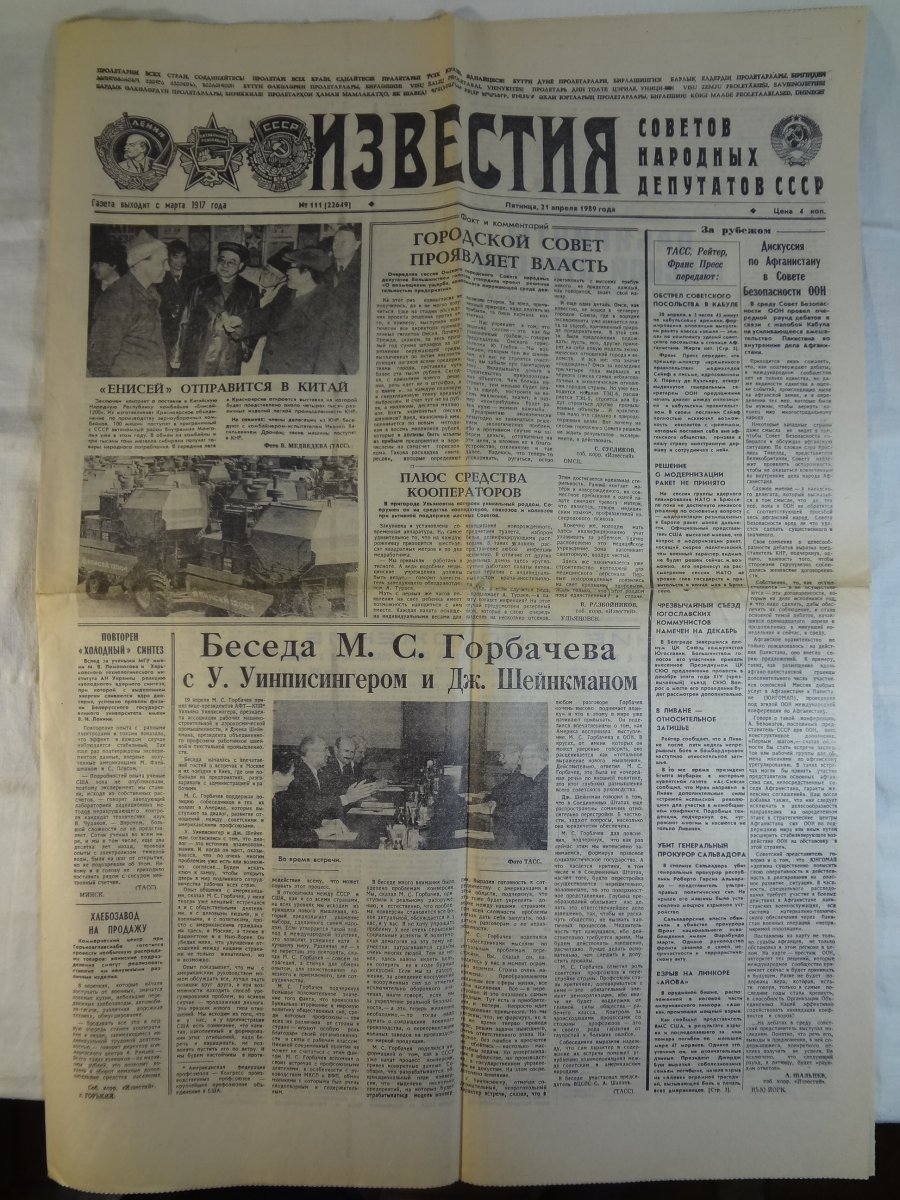 Газета Известия №111 1989 г.