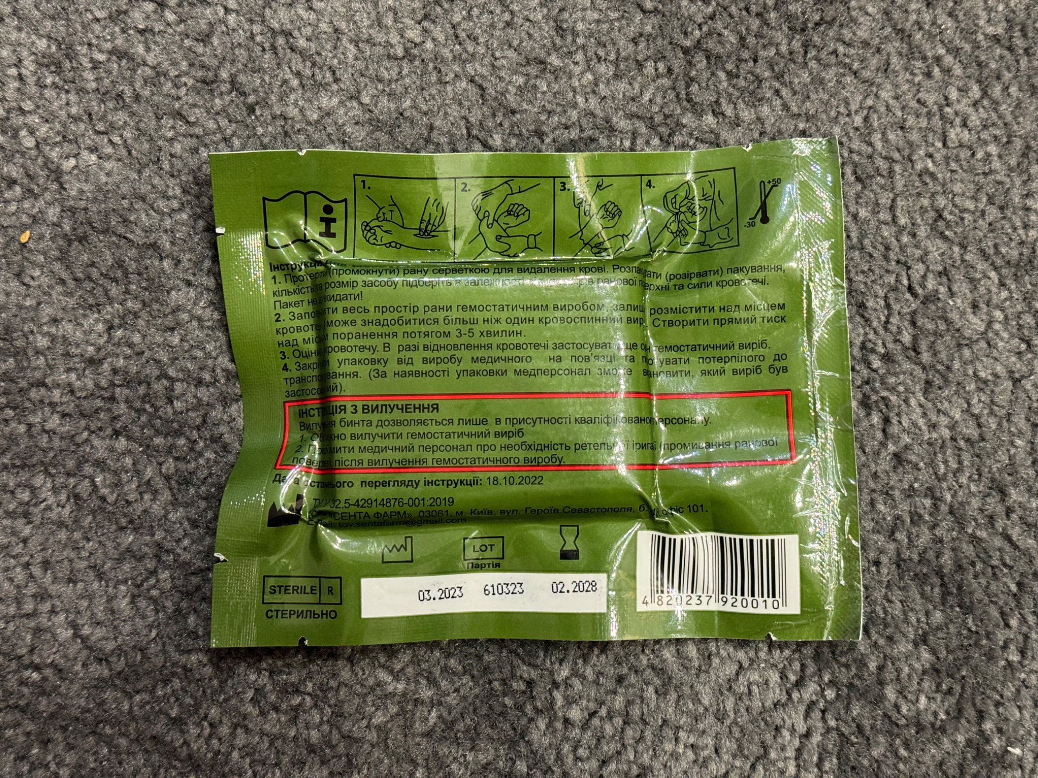 ГЕМОСТАТИК представляет собой гофрированный бинт, пропитанный гемостатической композицией и идеально подходит для остановки кровотечений средней и высокой интенсивности, а так же для проведения тугой тампонады раны. Формирование кровяного сгустка начинается уже на 30-й/40-й секунде после тампонировния, а полная остановка кровотечения (в т.ч. артериального) происходит менее, чем за 3 минуты. Материалы, из которых производится ГЕМОСТАТИК, имеют рентгеноскопический свойства, что позволяет легко выявлять средство в ране. Компоненты препарата не осыпаются с материала-носителя и не остаются на руках.