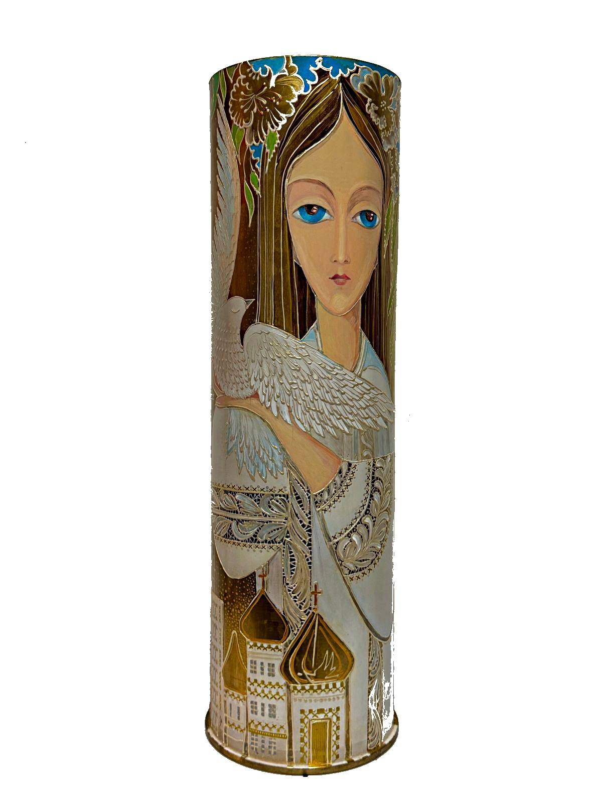 Снаряд артилерії Д-30, колись створений у надрах радянського військово-промислового комплексу, є зразком інженерного прориву та потужності. Він наділений унікальними характеристиками, які дозволяють ефективно здійснювати артилерійську підтримку сучасних бойових дій. Цей 122-мм снаряд, що вирізняється високою точністю та далекобійністю, здатний вражати різноманітні цілі – від живої сили супротивника до укріплених позицій. Усередині снаряда складна конструкція, що включає високоякісні вибухові речовини та стабілізуючі елементи, що забезпечує його надійність та ефективність у бойових умовах. Секрет його успіху криється не тільки у технічних характеристиках, а й у рівні підготовки розрахунків, які керують знаряддям Д-30. Ці пушкарі, володіючи навичками та досвідом, здатні ізолювати ціль із вражаючою влучністю. Снаряд Д-30 став не просто боєприпасом, а й символом артилерійської могутності, який використовувався у конфліктах у всьому світі. Його історія нерозривно пов'язана з важливими сторінками військової техніки, роблячи його незамінним в арсеналі армії, яка прагне перемоги. І у кожного постріла є історія, яку можна буквально помацати – це гільза. Саме гільза стала предметом для даного лоту. Експозицію пофарбовано в київській майстерні у слов'янському стилі – високоякісними акриловими фарбами нанесені дівчина, храм та символ світу – голуб. Ця гільза буквально просочена патріотизму і єдина у своєму роді.