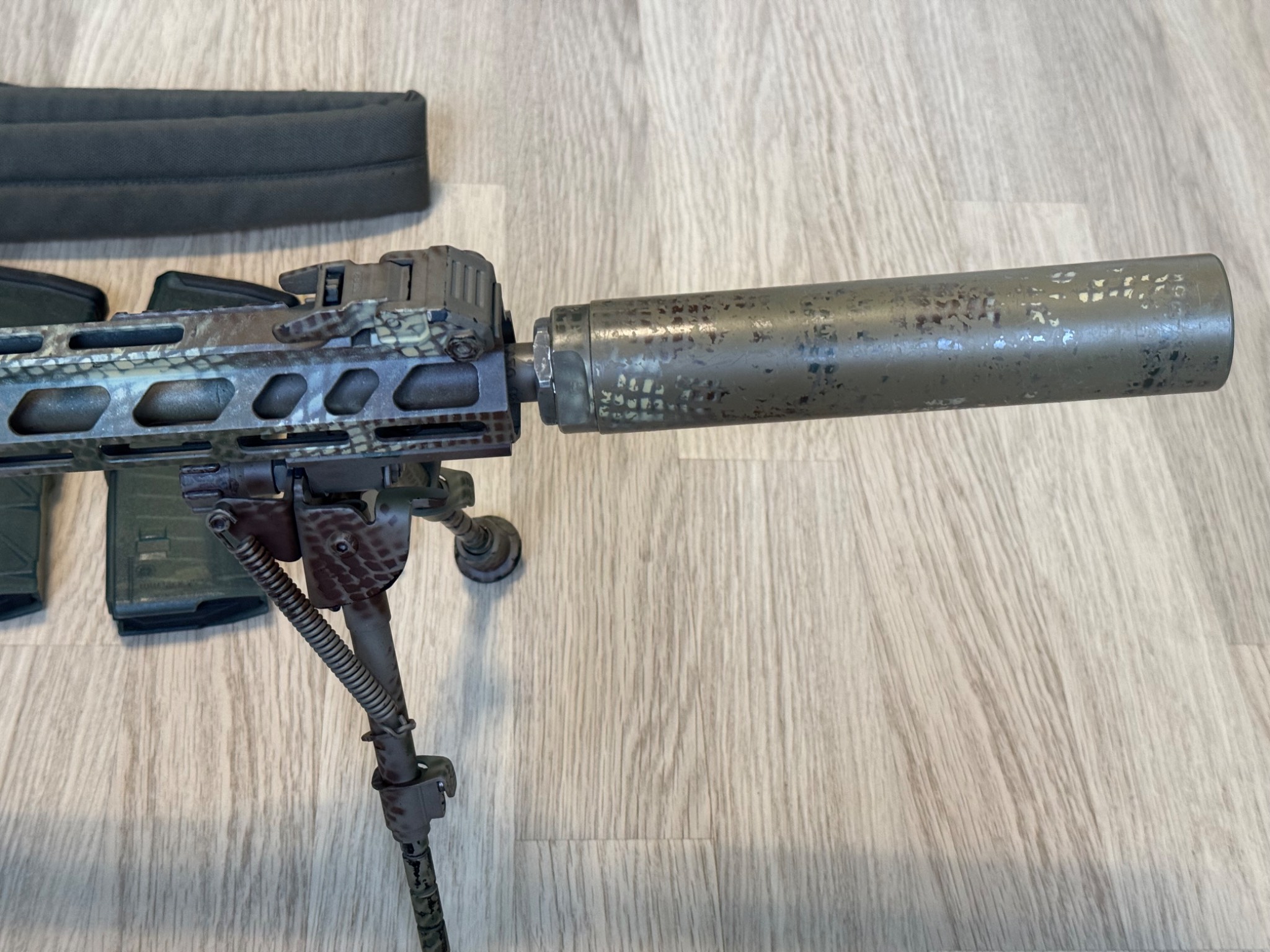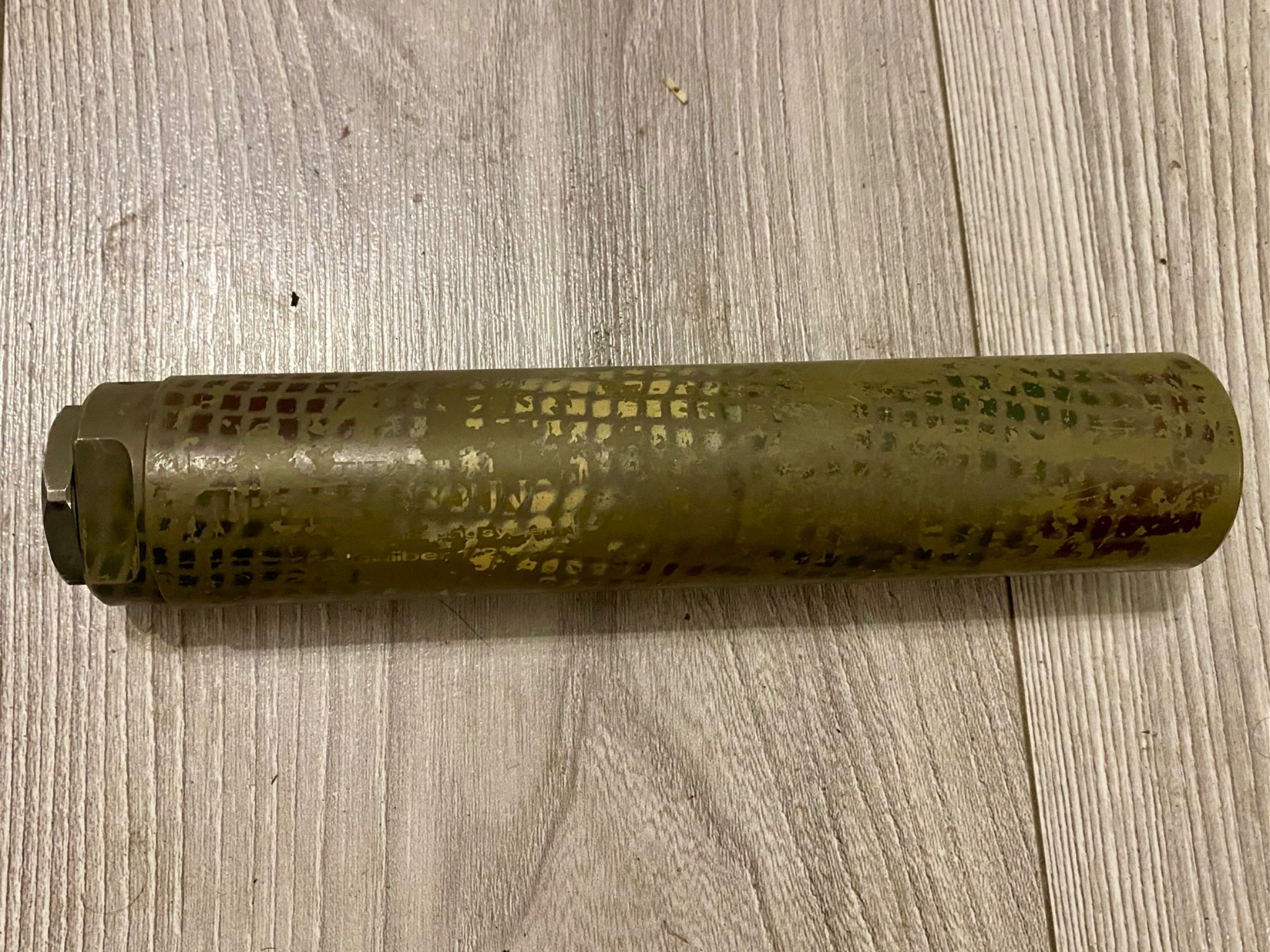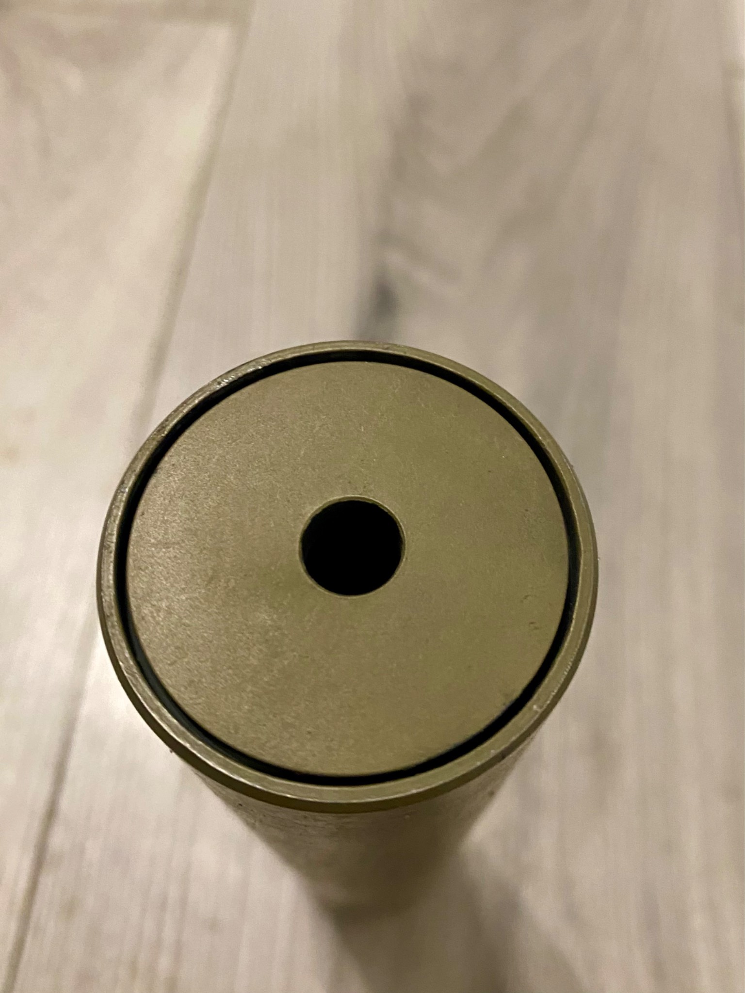 Продам свій глушник від компанії ZeroSound Titanium. Калібр 5,56 або .223, різьба 1/2ʼʼ-28. Настріл до 80ти пострілів. Виготовлений зі сплаву авіаційного алюмінію та титану тому вага всього 300 г. та довжина 196 мм. Не розбірний, має контр-гайку, також має систему газорозвантаження тому регулювання газ-блоку не потребує. Дуже добре гасить полумʼя та знижує гучність пострілу.