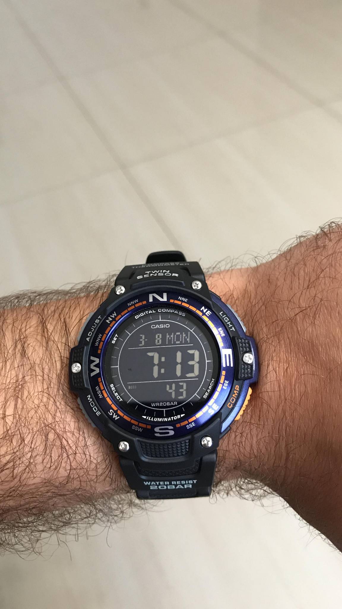 Інверсійний дисплей. люмінесцентне підсвічування. Функції: будильник, дата, день тижня, календар, компас, світовий час, секундомір, таймер, термометр (-10 /+ 60 °C), 5 незалежних будильників. Кварцовий механізм. Точність ходу +/- 30 секунд на місяць. Морозостійкість до -10°C/14°F. Водонепроникність 200 м. Полімерний ремінець з пряжкою. Мінеральне скло. Батарейка CR2025. Габарити 51.5 x 47.6 x 13.2 мм. Вага 55 грам. Комплектація: коробка, підставка, інструкція англійською. Новий. Оригінал. Шість перших світлин реальні.