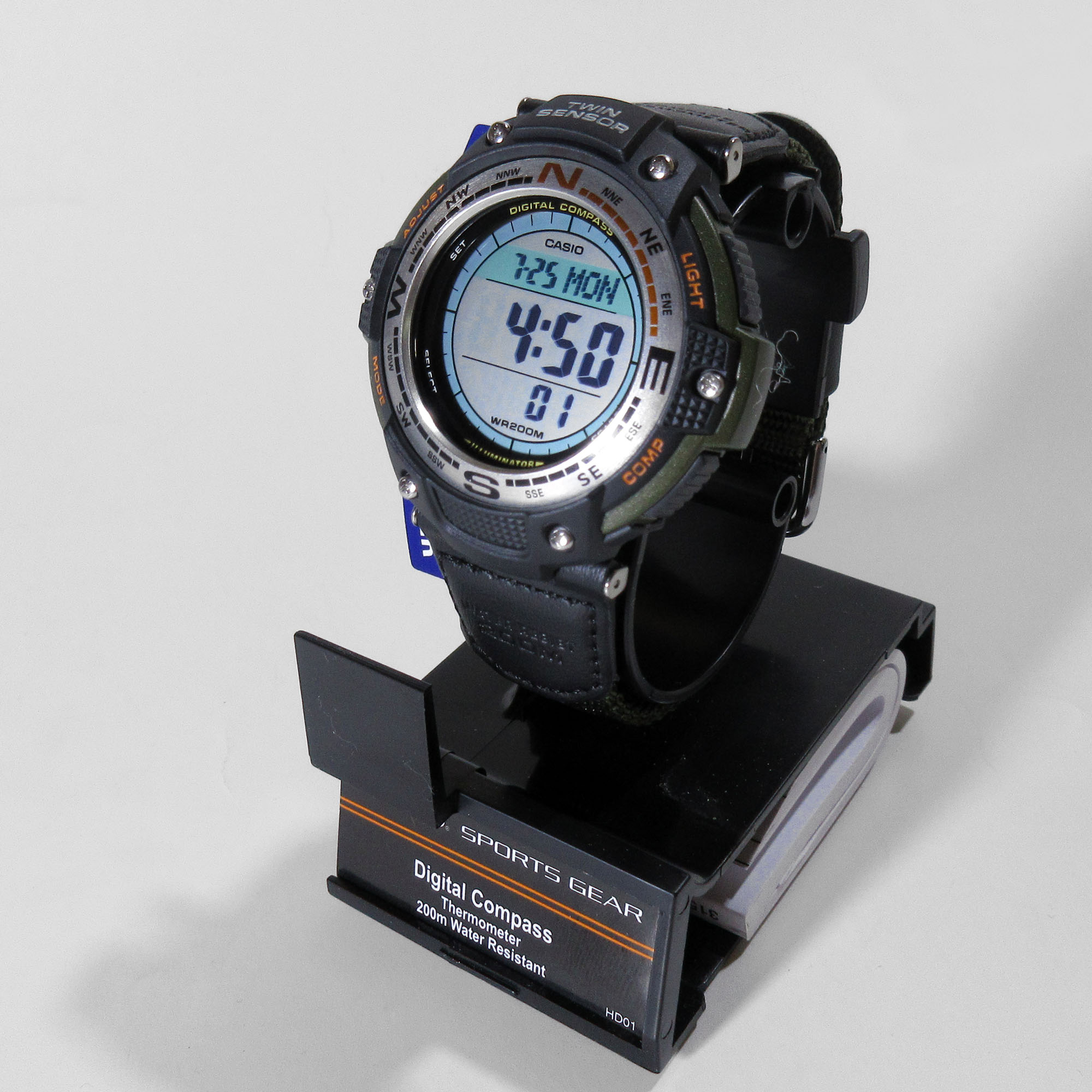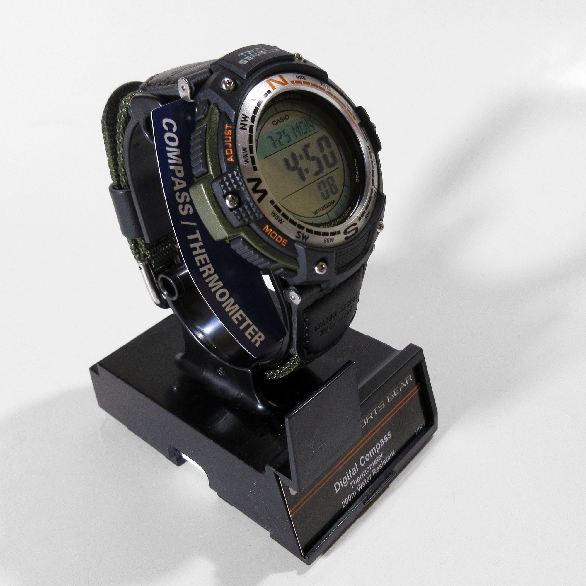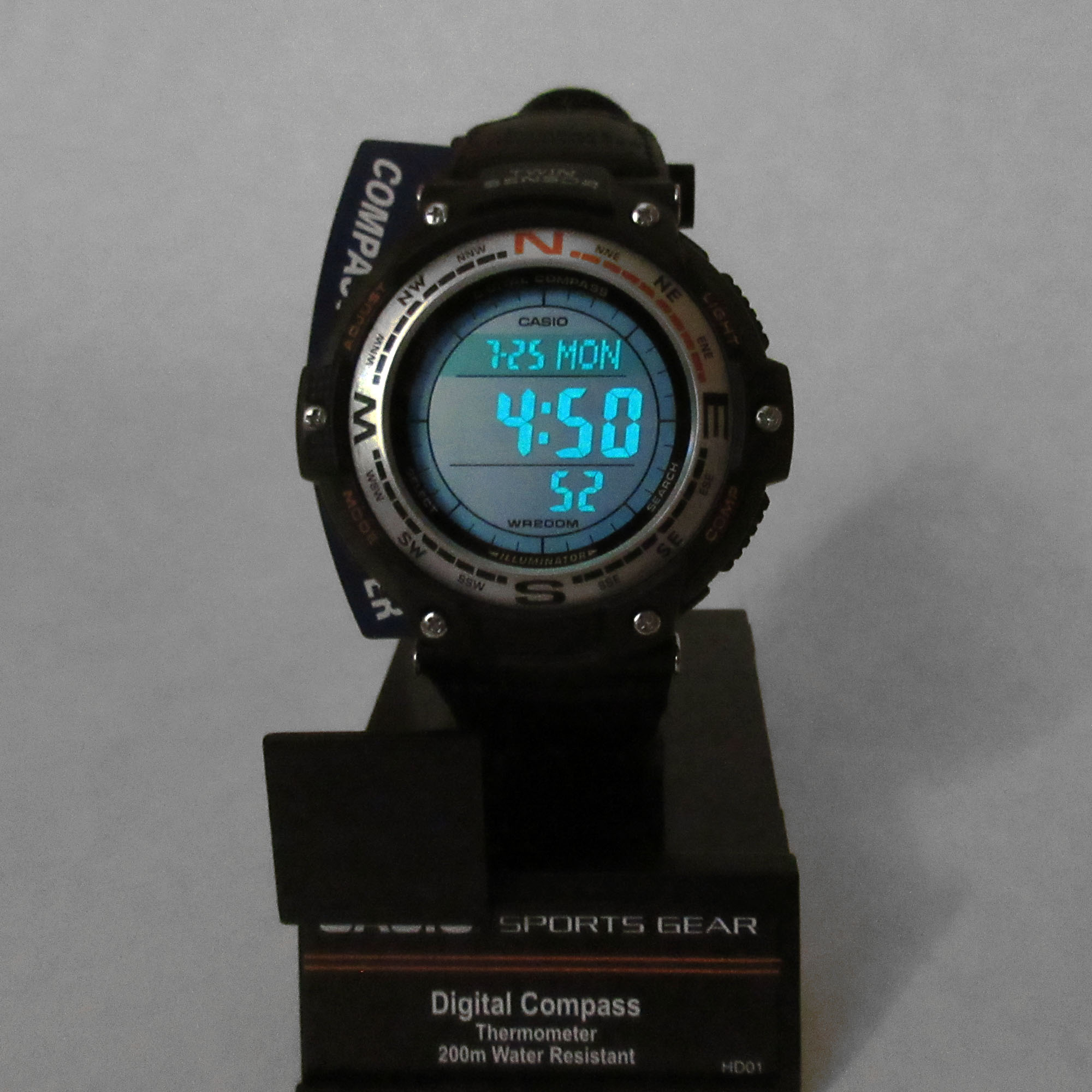 Люмінесцентне підсвічування. Функції: будильник, дата, день тижня, календар, компас, світовий час, секундомір, таймер, термометр (-10 /+ 60 °C), 5 незалежних будильників. Кварцовий механізм. Точність ходу +/- 30 секунд на місяць. Морозостійкість до -10°C/14°F. Водонепроникність 200 м. Довговічний нейлоновий ремінець з пряжкою. Мінеральне скло. Батарейка CR2025. Габарити 51.5 x 47.6 x 13.2 мм. Вага 55 грам. Комплектація: коробка, підставка, інструкція англійською. Новий. Всі світлини реальні. Оригінал.