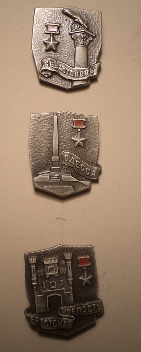 Значки новые в хорошем состоянии состоянии.На значках изобраены памятники городов, символизируюжие геройство города.