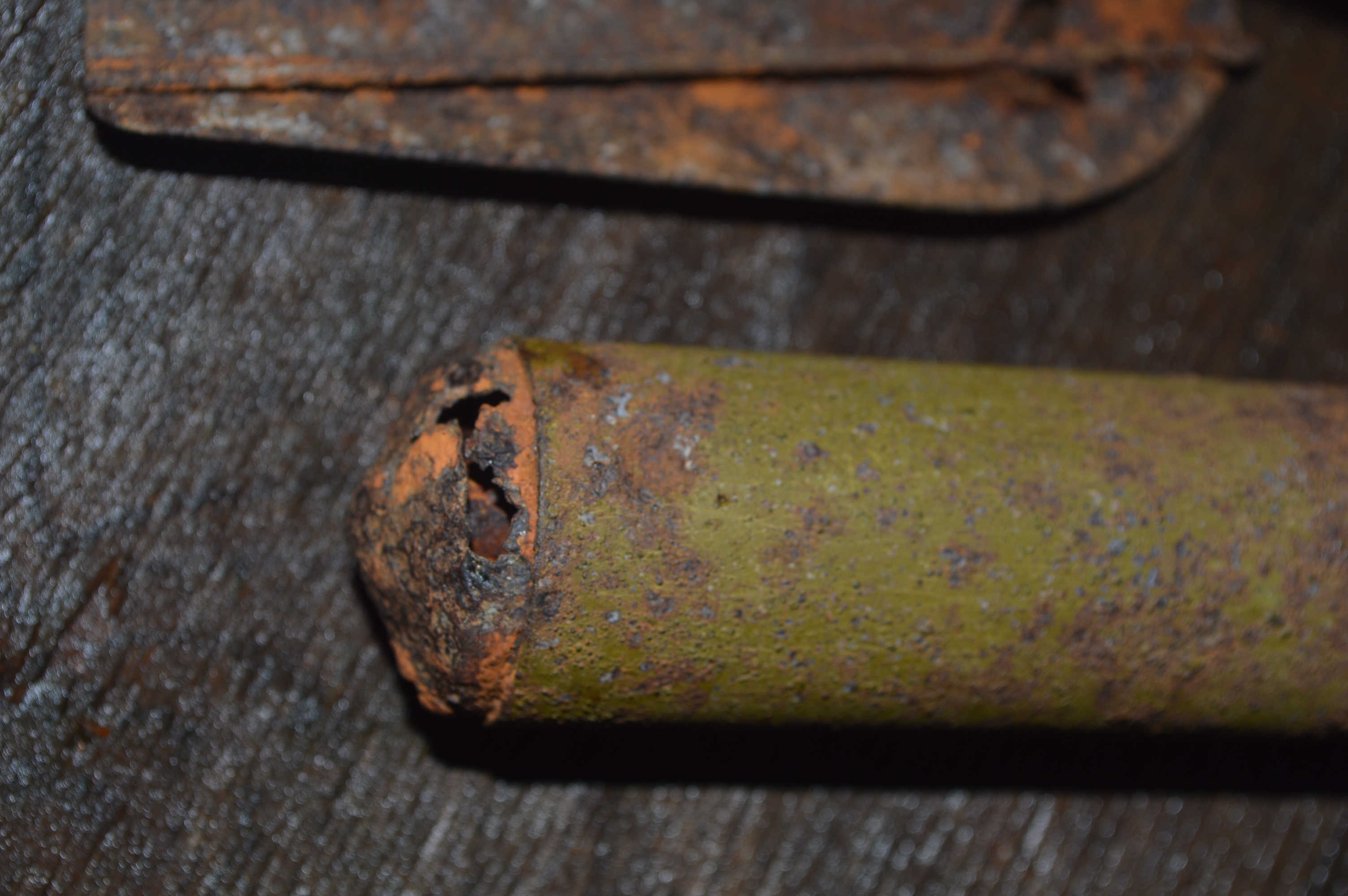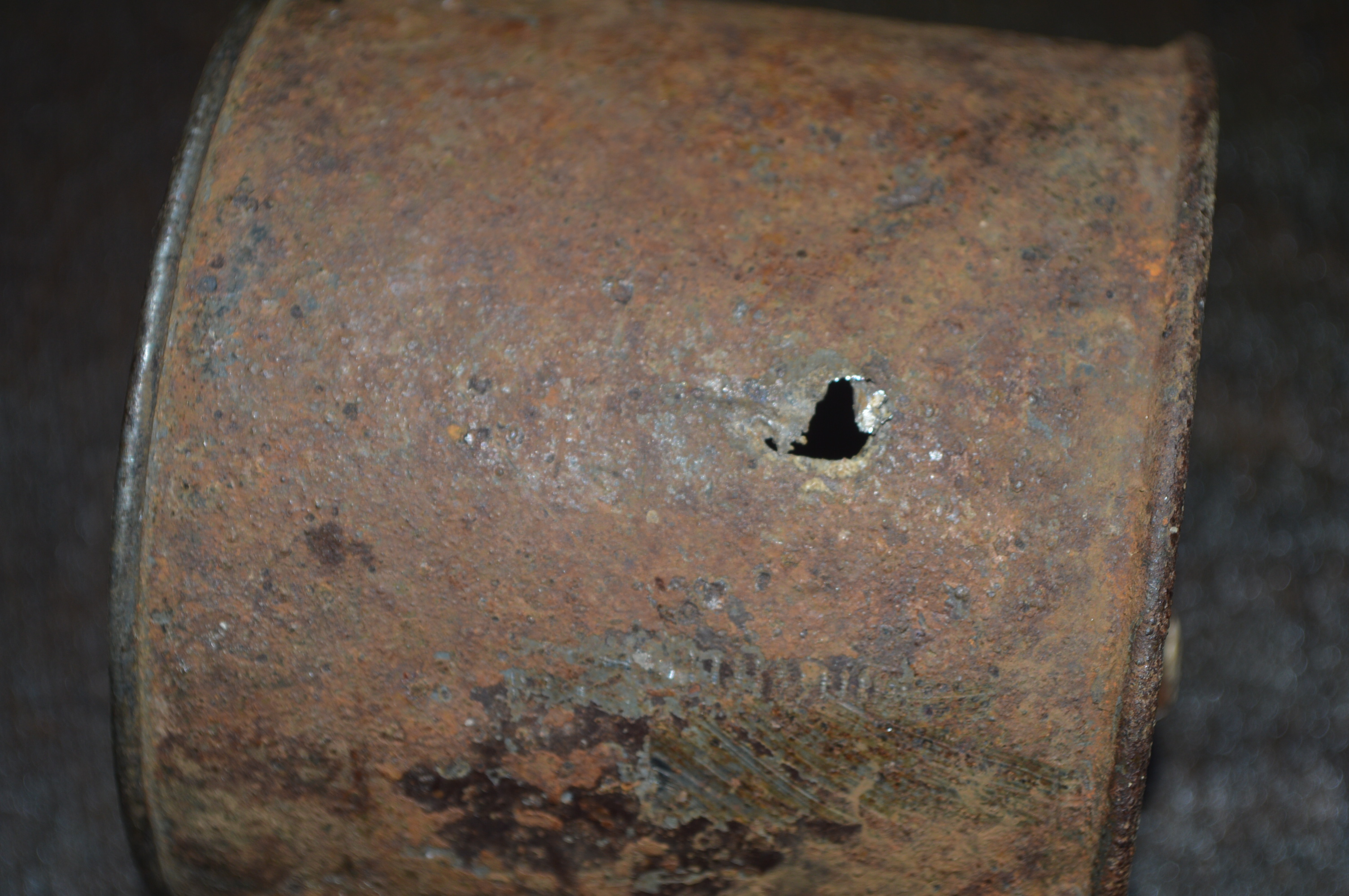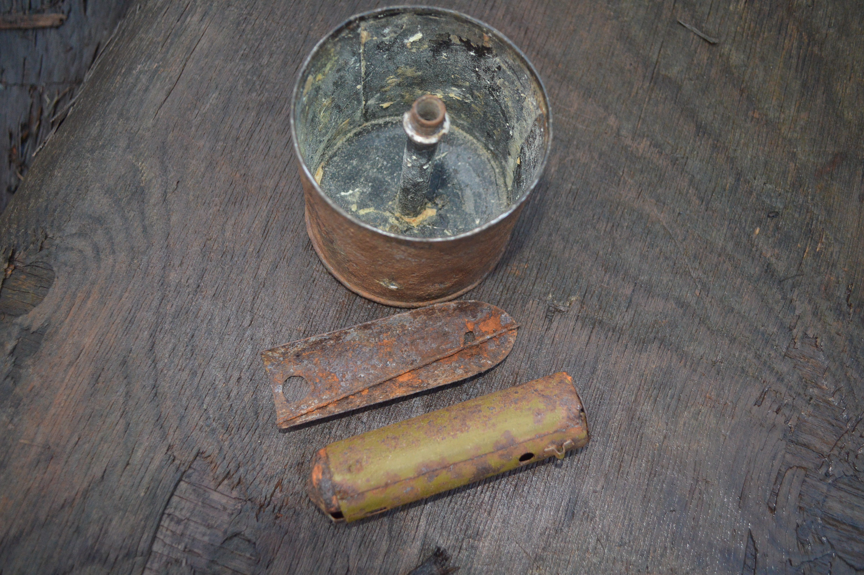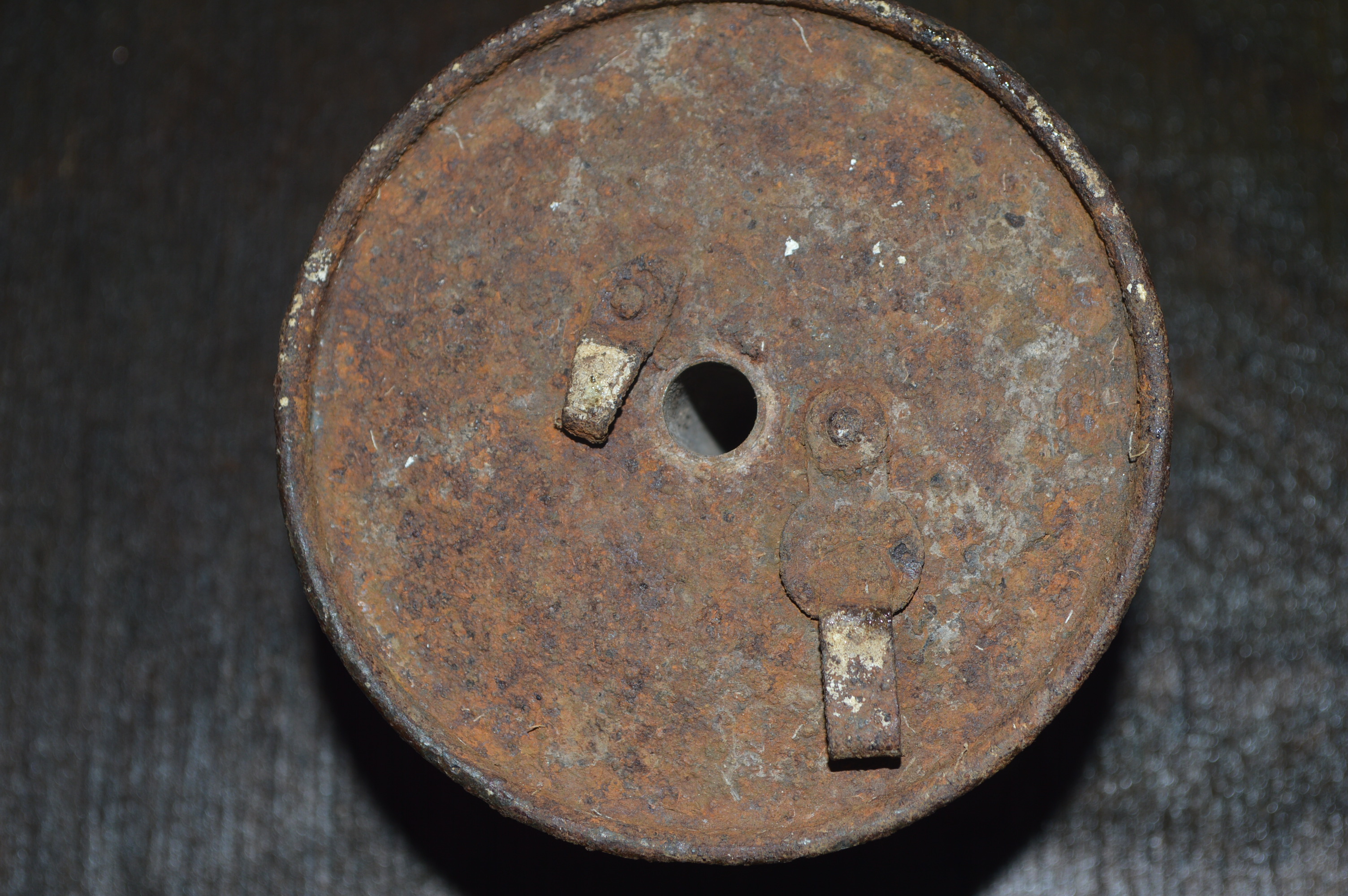 СОДЕРЖИМОЕ ИЗЪЯТО.РУЧКА В РОДНОМ ОКРАСЕ.МЕТАЛЛ КРЕПКИЙ. ДЫРОЧКА ОТ НЕАККУРАТНОГО ДЕЙСТВИЯ ВО ВРЕМЯ ЧИСТКИ ВНУТРЕННОСТИ.ХОРОШИЙ ЭКЗЕМПЛЯР ДЛЯ КОЛЛЕКЦИИ.