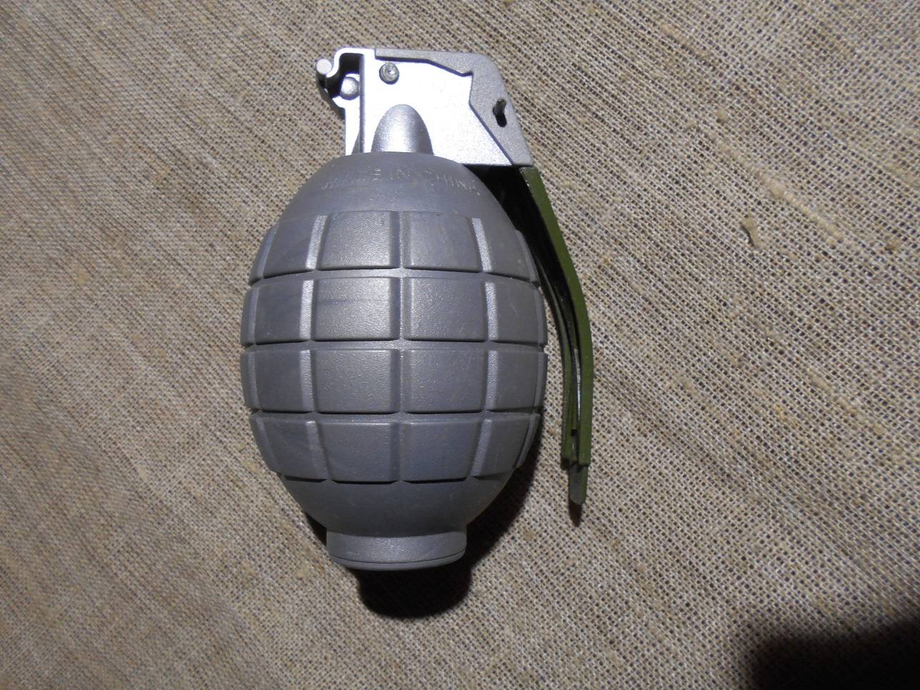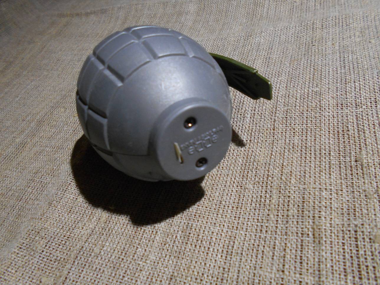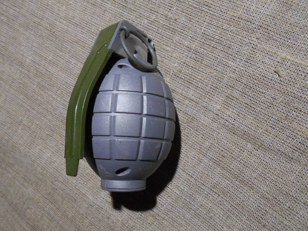 Пластиковая граната - сувенир, в натуральную величину, со встроенной звуковой пугалкой. Внешне похожа на страйкбольную. В нижней части из корпуса торчит кусочек белого пластика и если его вынуть, а саму гранату дать кому ни будь в руки - будет интересная реакция... Граната сама по себе абсолютно безопасна , внутри кроме динамика , микросхемы и батареек ничего нет... Батарейки слабенькие и на данном этапе могут не сработать... Можно использовать и как новогоднее украшение на ёлку . Есть 6 штук с окраской корпуса в серебристый - Цена указана за один экземпляр.