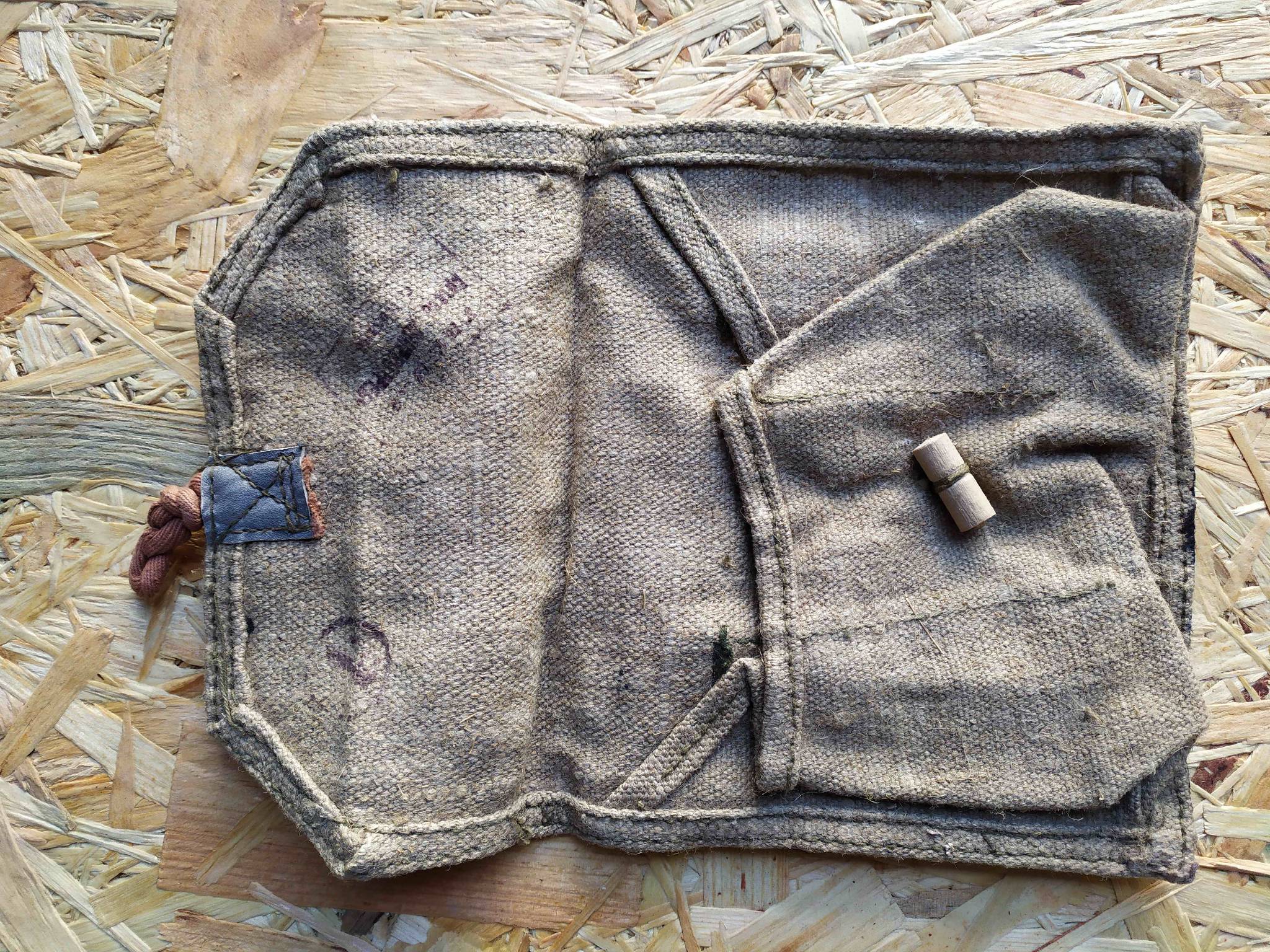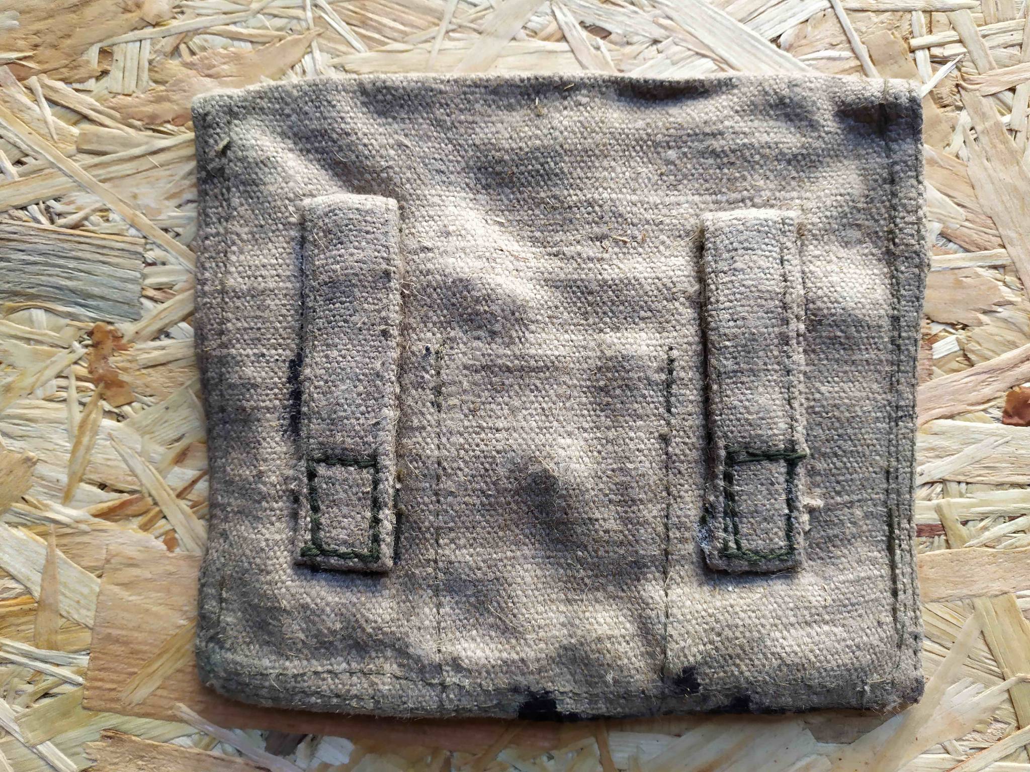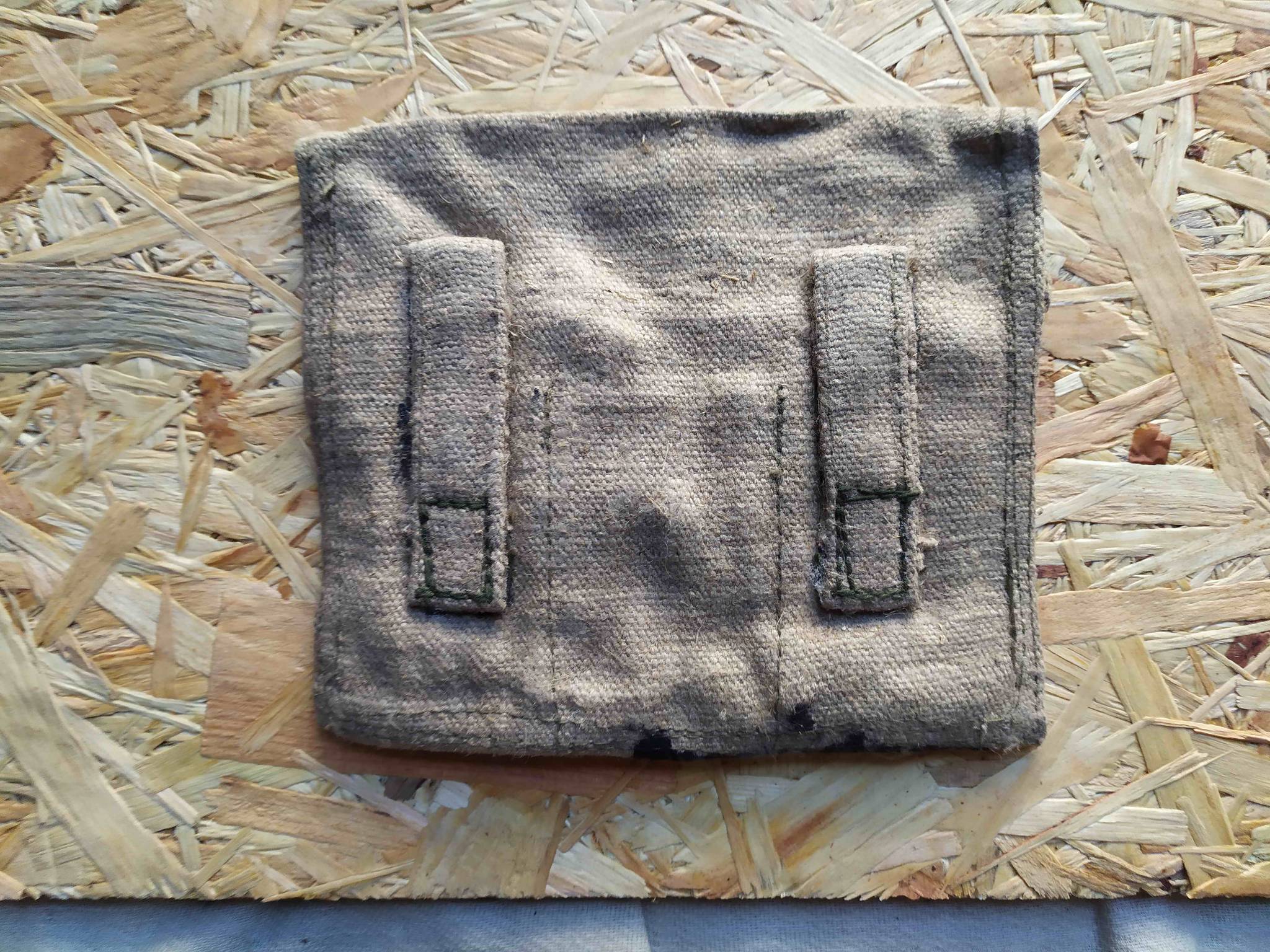 Советский гранатный подсумок на три секции. Выпуск или довоенный или 40-е года; на клейме год не указан, но из этой пачки раньше были с клеймами на 30-е и 40-е года. Можно рассмотреть Артель Ширпотреб.