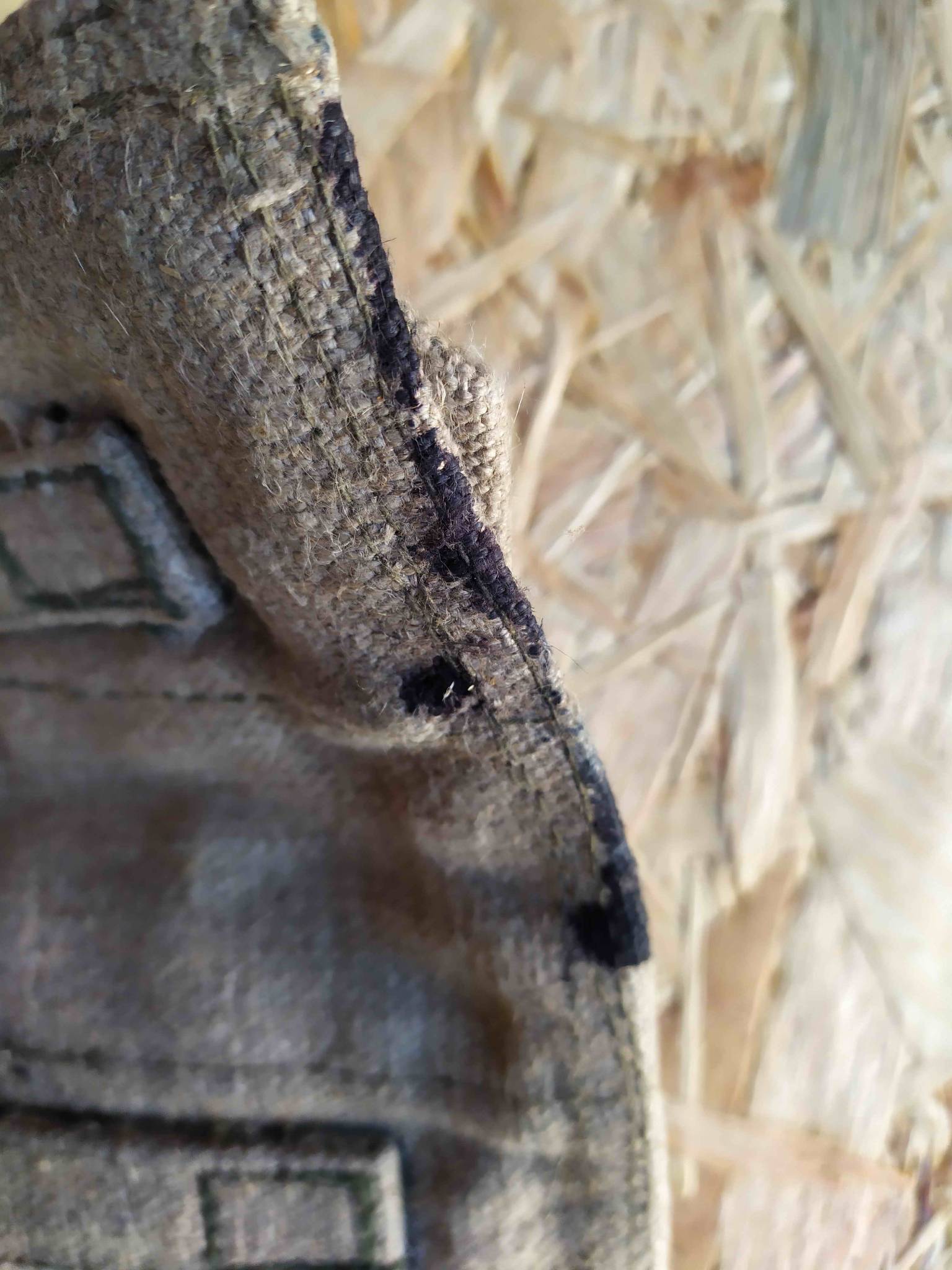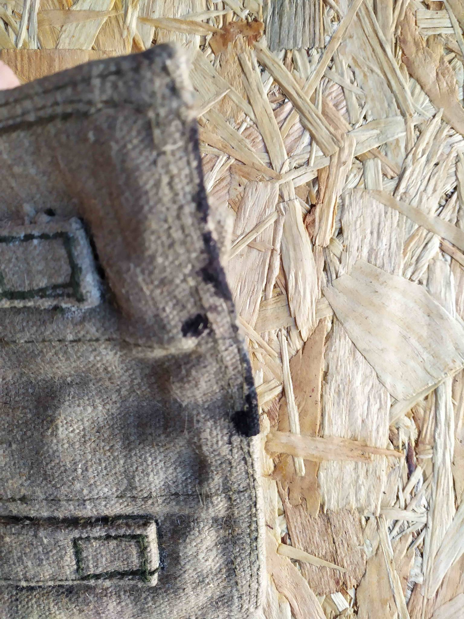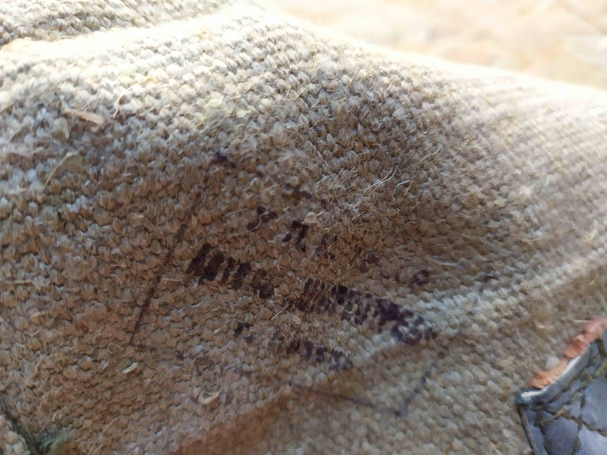 Состояние - складской. Ткань крепкая. В некоторых местах потемнела. По нижнему краю ткань немного испачкана, но это не масло/мазут, а больше похоже на краску (возможно чернила для клейма).