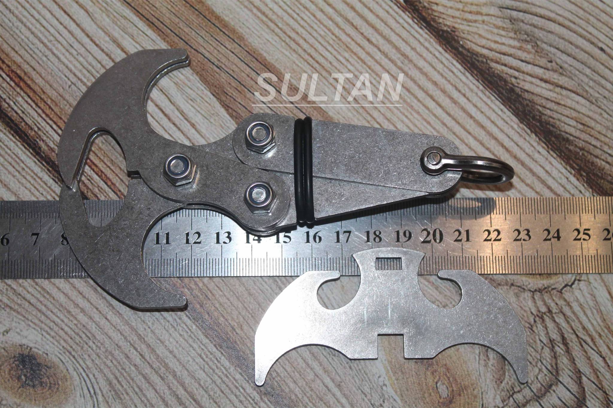 · При ударі об перешкоду, гак розкривається, фіксує та захоплює зубами предмет. Також він призначений для лазіння чи сходження людини на будь-які поверхні. Можна використовувати у якості: штурмової кішки, невеликого якоря, мисливського гака, механізму для підйому вантажів чи для видобутку дров.