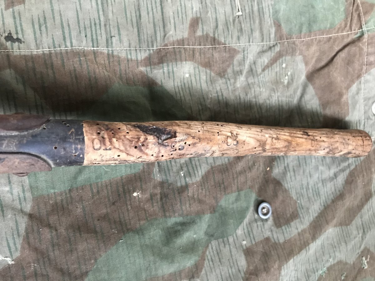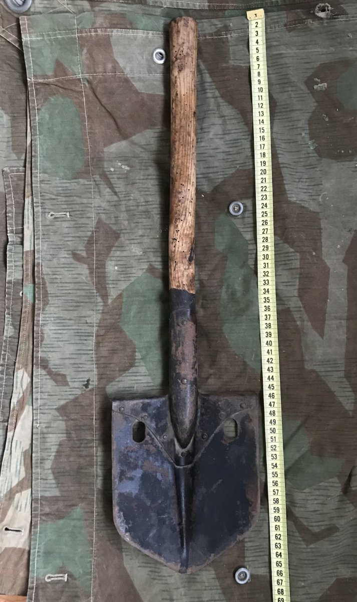 Оригинальная итальянская лопата, ранняя (во время ВМВ шкала уже не наносилась, может ещё с ПМВ), сам черенок «побитый» шашелем но дерево крепкое. Сама лопата сохранила родной окрас. Вещь редкая в наши дни и достойна музея.