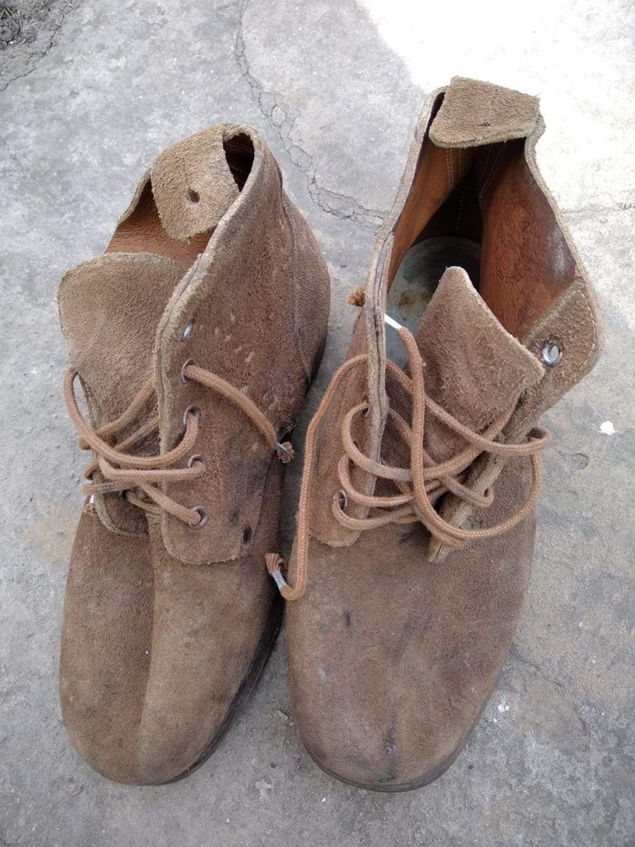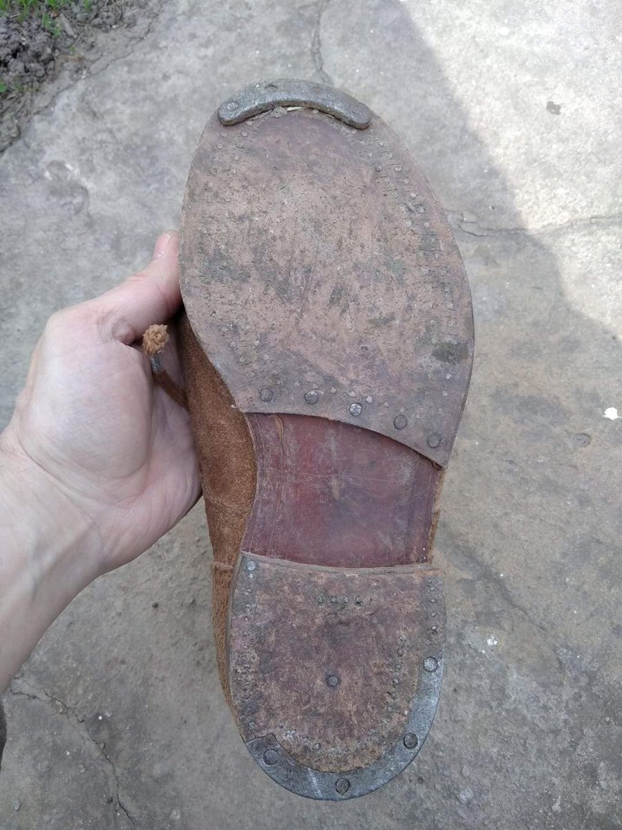 Японські армійські черевики, війна або зразу після війна (скоріше перше, бо післявоєнні незрозуміло як би опинились в українському селі)) Розмір по стельці 26-26,5 см. З невеликим апргрейдом підуть на німців на ДСВ.