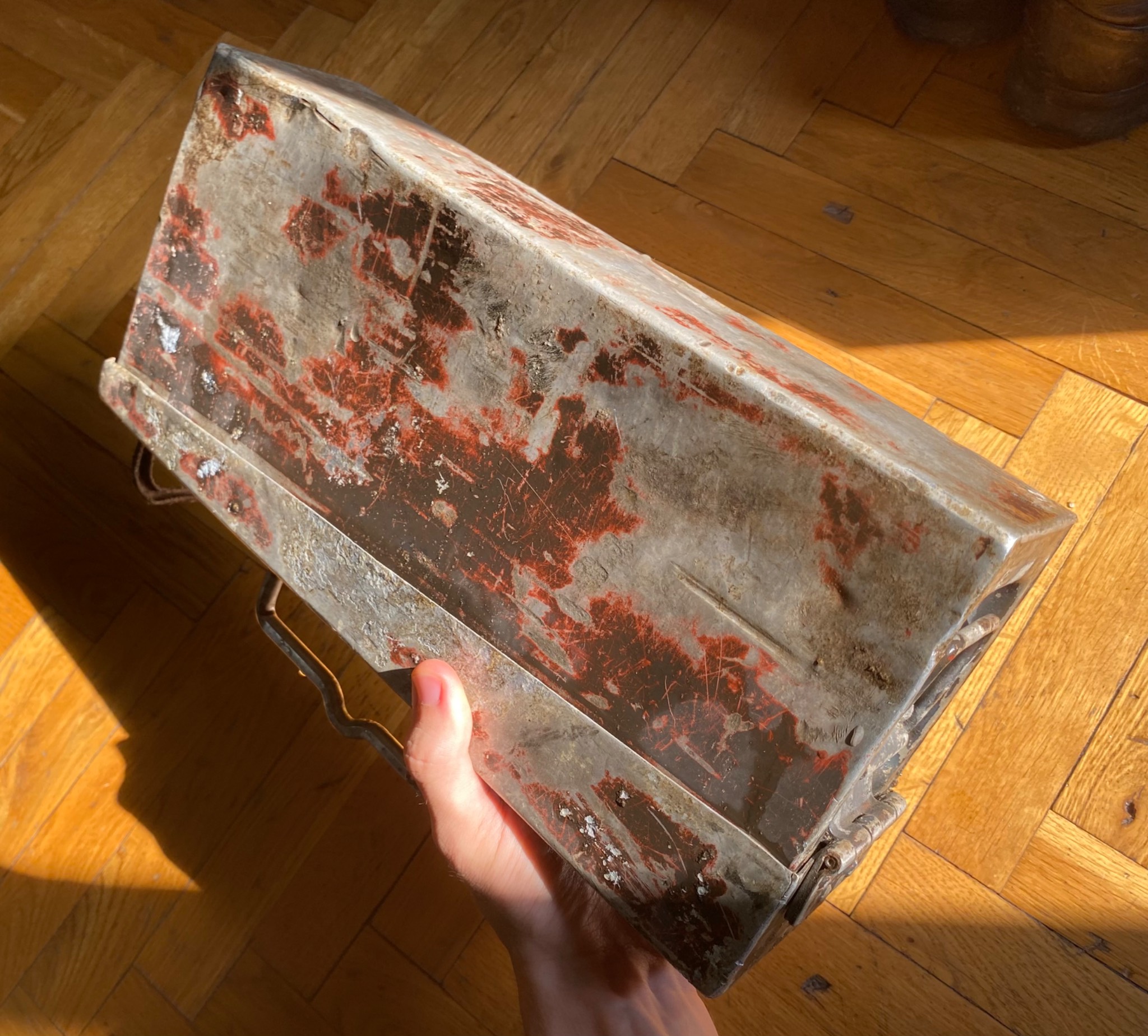 Хороший ящик без дыр, трещин и прочих неприятностей. Расписной - сбоку «2 Kp.»(2 kompanie) - вторая рота. На крышке красная полоса, обозначающая то ли трассирующие, то ли бронебойные патроны.