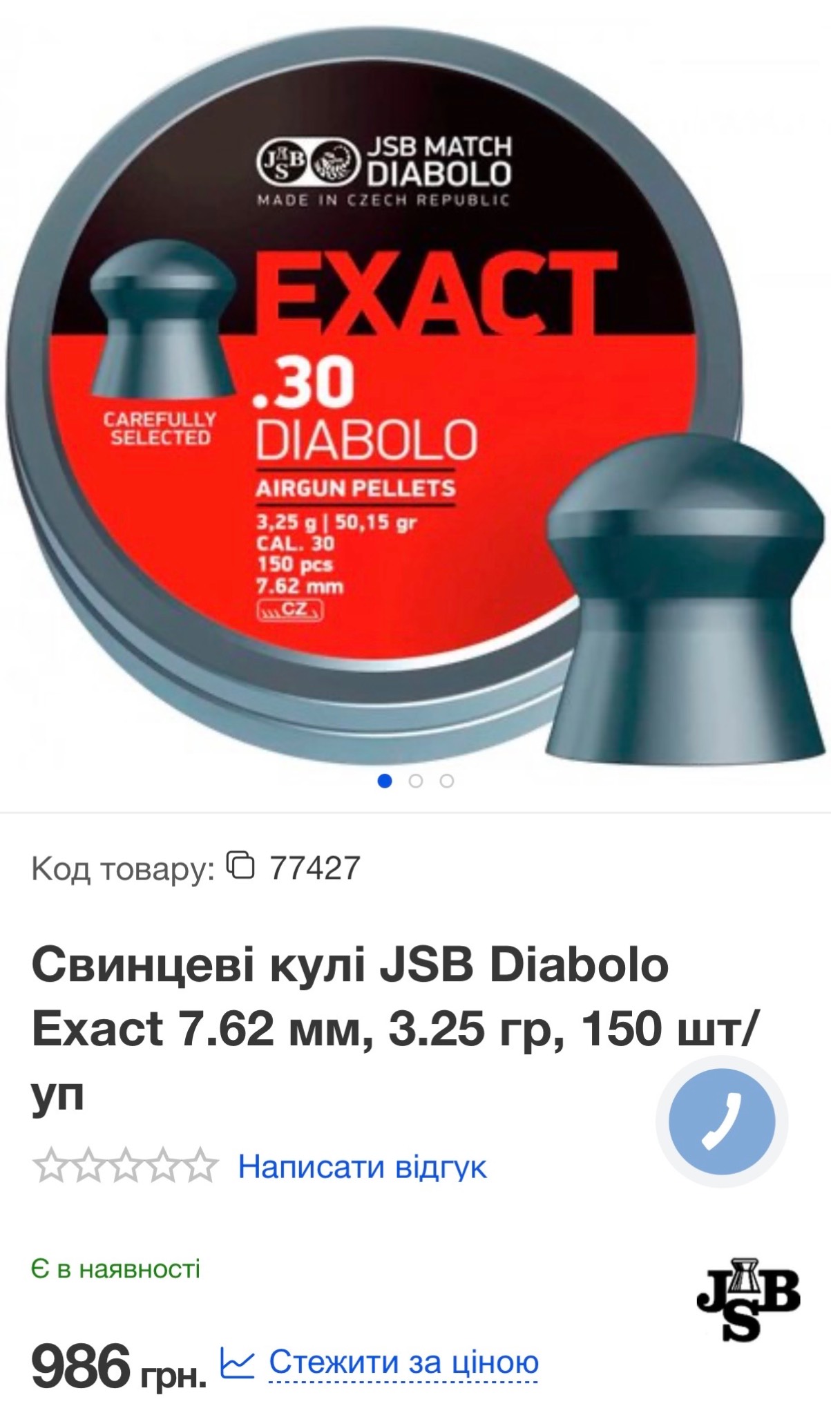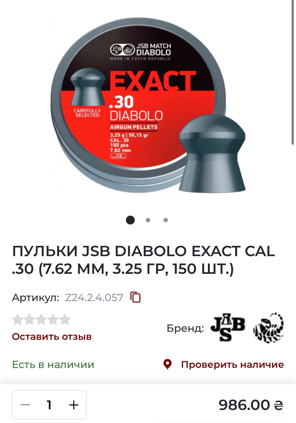JSB Diabolo Exact cal .30 JSB (в наявності 2 шт.)
