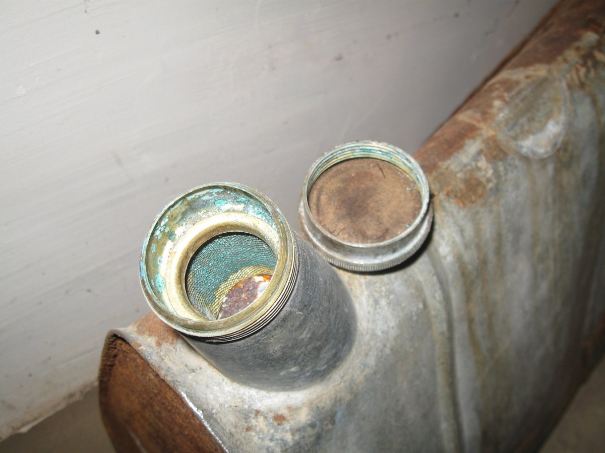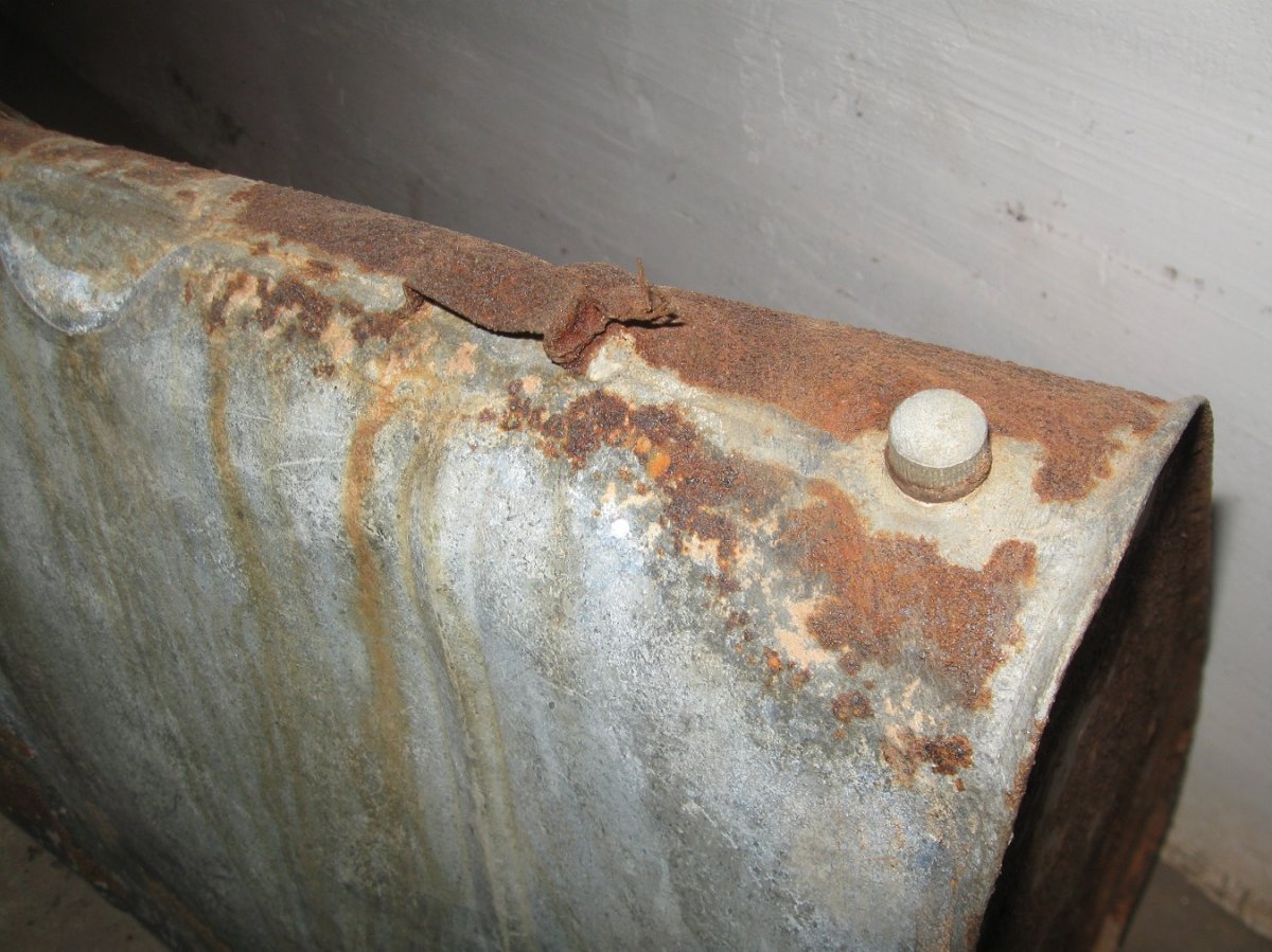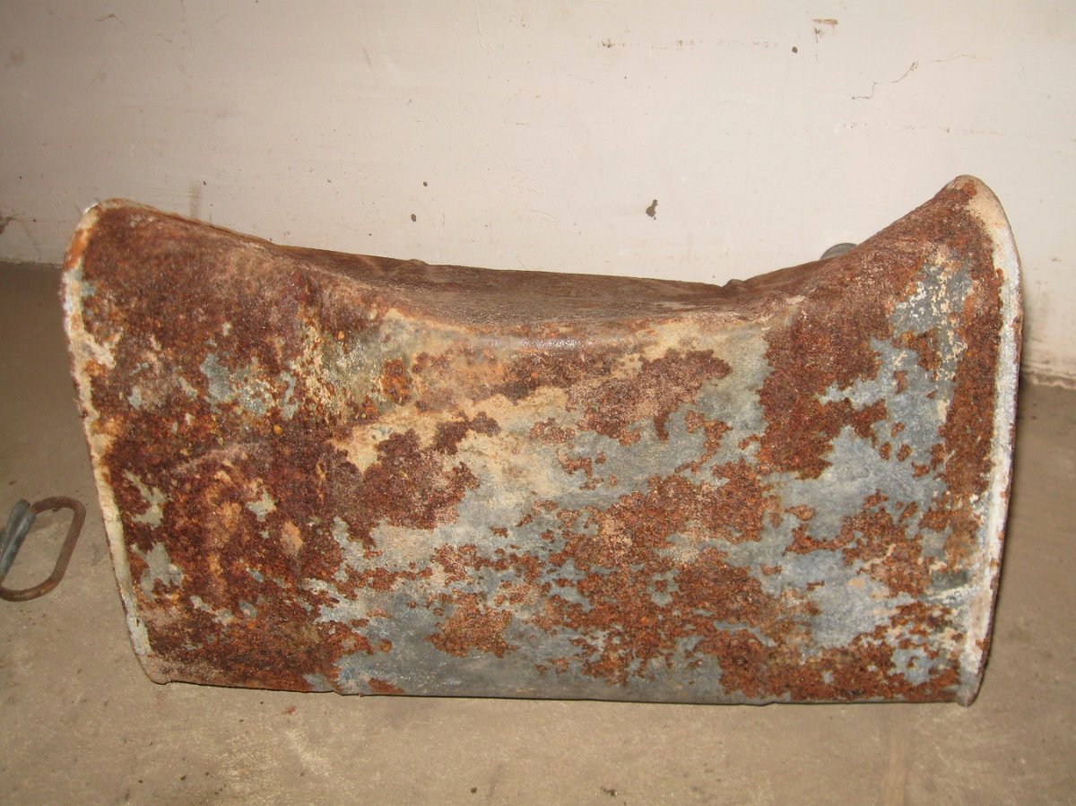 Копана, не чищена, крепкая без прогнили, ручка отпала на пайке, согнута, в местах сильного сгиба есть свищики ( трещины).