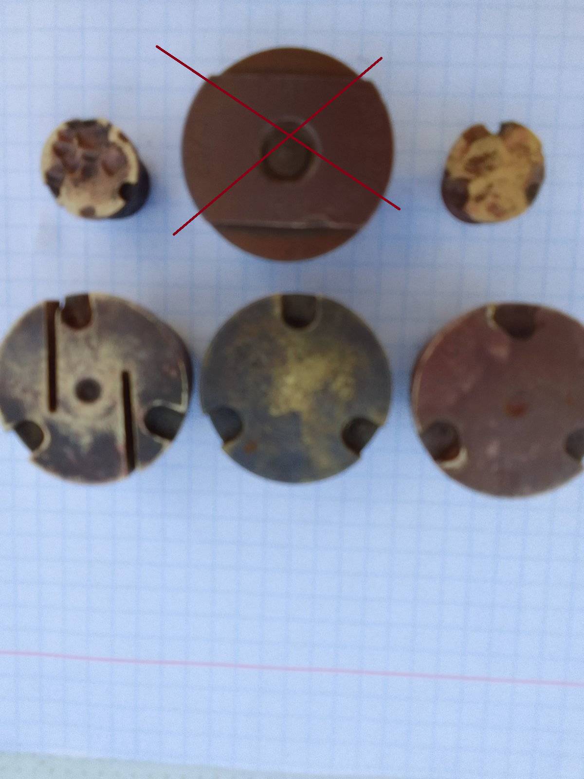 Лесной коп . Почищены . ММГ . Много надписей - обозначений . По годам есть 1938 - 42 - 43 . По верхнему диаметру есть размеры = 30 , 30 , 30 , 16 , 16 мм . Общий вес лота = 250 грамм . Лично сам хорошо упаковываю все свои лоты ! Лоты разбиваю и комбинирую !