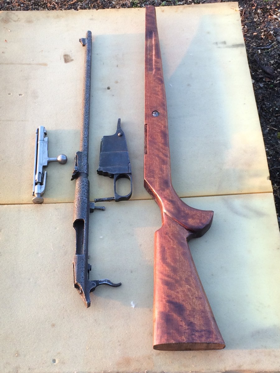 Карабин Мосина,укомплектован затвор и магазин склад ,в патроннике была гильза ,мушка выставлена и посажена от к-98 прицельная планка работает ,шептало и пружина отсечки склад ,ложе новодел без тыльника ,по сверлю где укажет новый хозяин