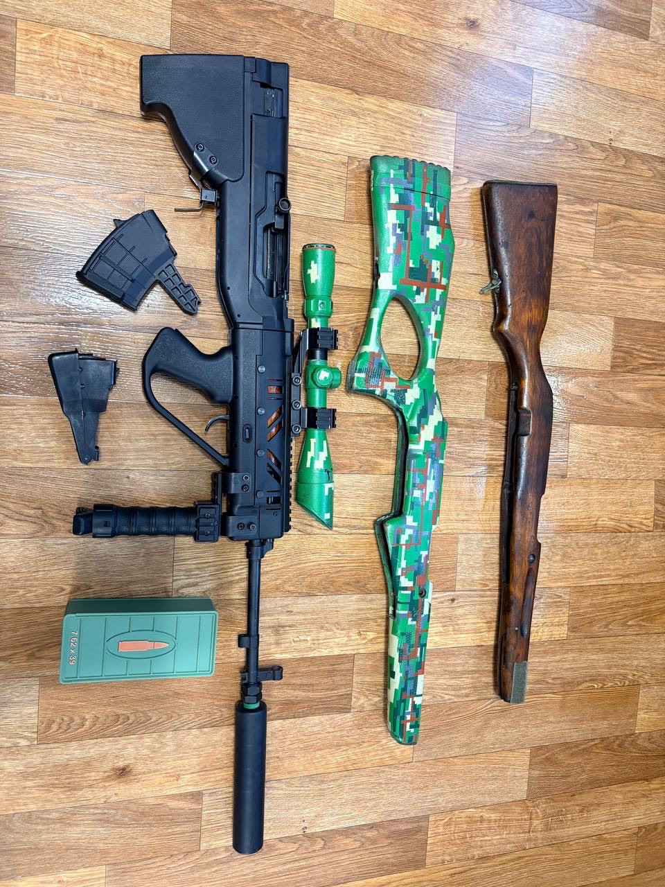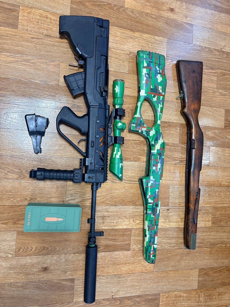 Оп скс 1954р обвіс буллпап компанії SG works. Безрізьбовий адаптер на глушник. Два знімних магазина. Додатковий моноблок на ласточкин хвіст для встановлення оптики на деревʼяні ложе. Розумним покупцям , розумний торг!!!