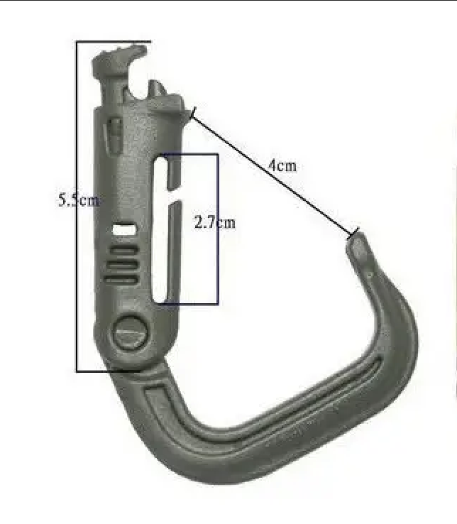 Основная нагрузка приходится на нижнюю часть, не нагружая штырь крепления и пружину защелки, что позволяет легко открывать и закрывать карабин вне зависимости от количества навешенного и общего веса нагрузки.
