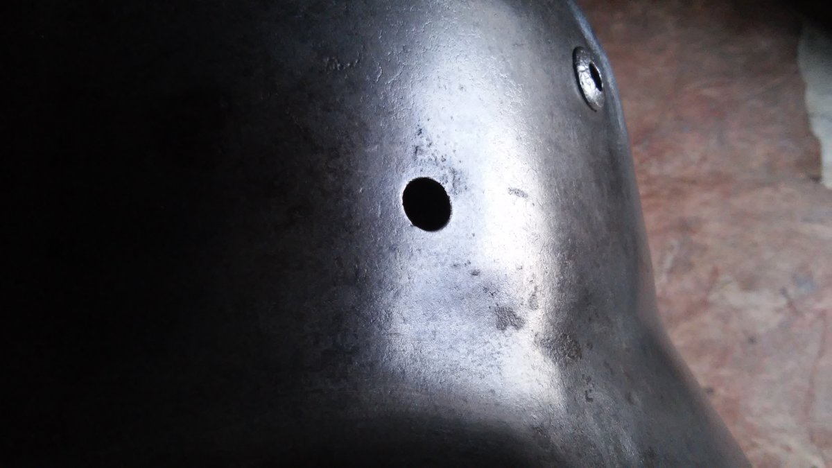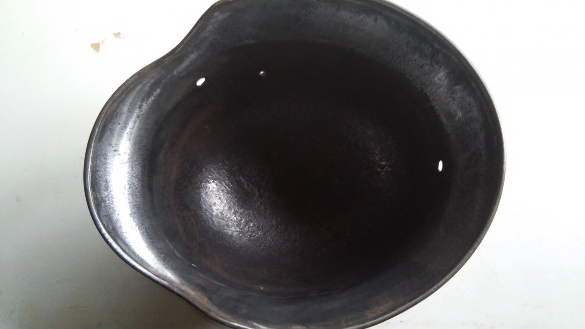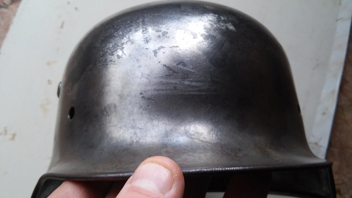 каска вычухана от краски до железа .состояние пресса .смело можно красить и готово .тема тут по ней каска находилась в сарае не коп под большим слоем нашей краски .https://reibert.info/threads/kason.882379/ .