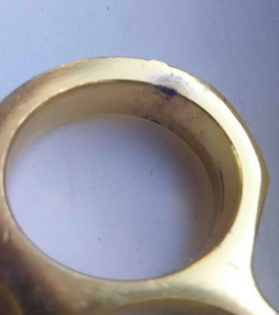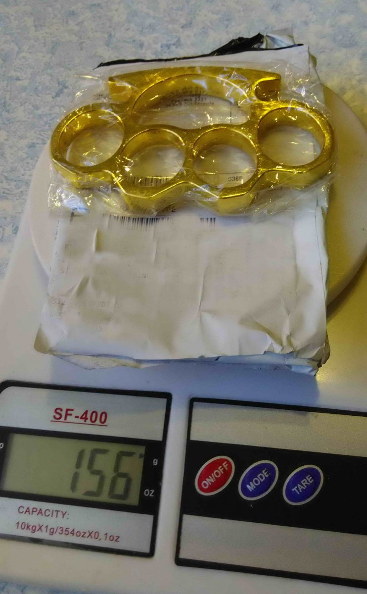 Кастет металлический. Примерно 12 мм толщина. Не магнитится. Вес примерно 155 г.