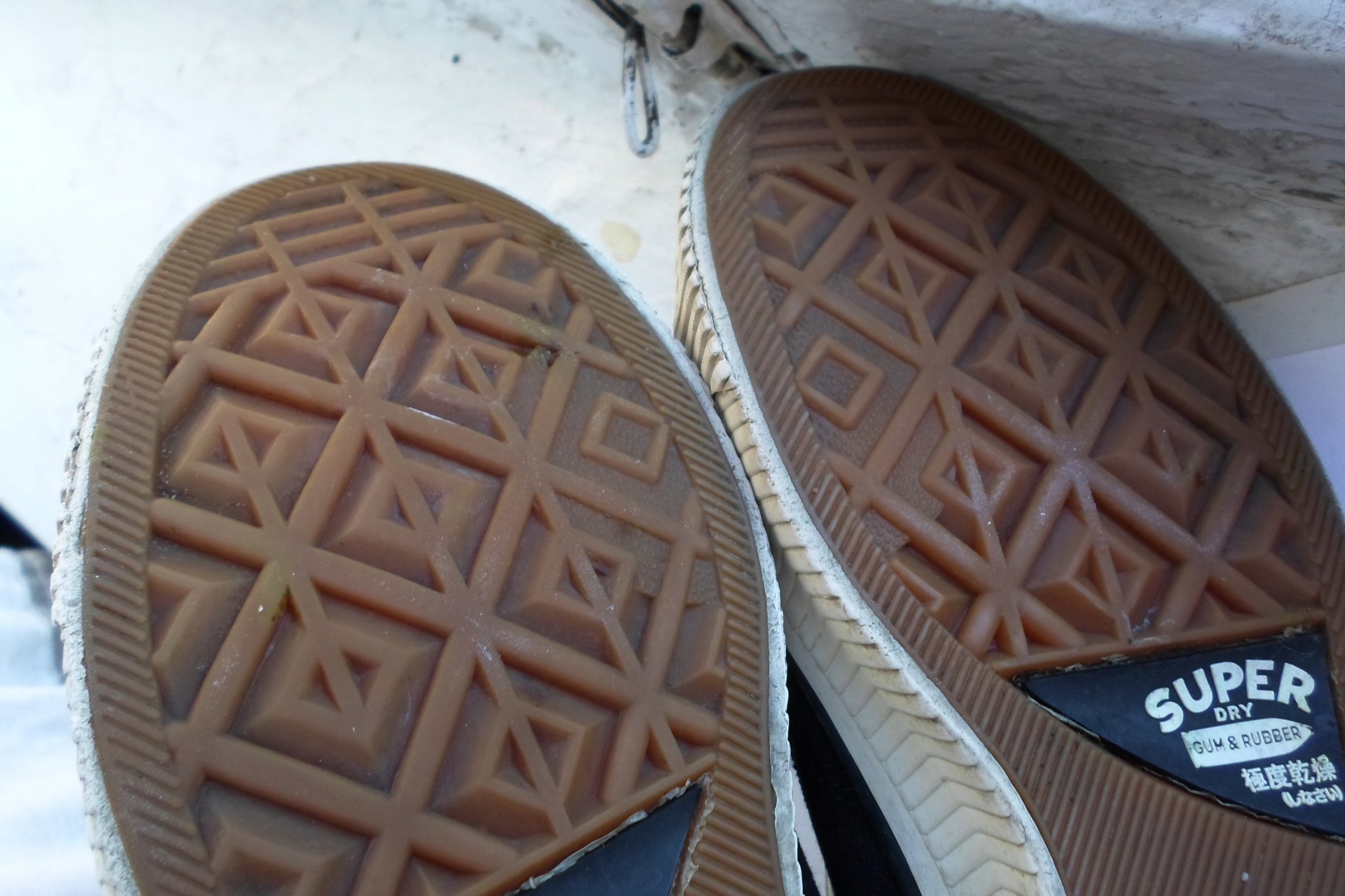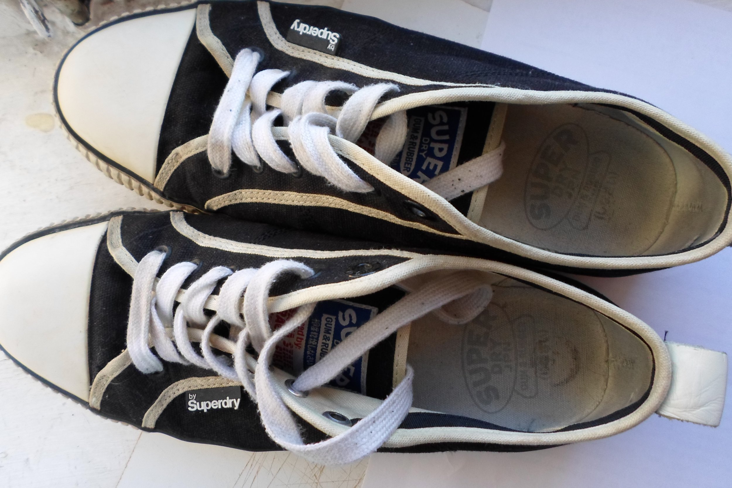 Кеды от Superdry/серии Gum&Rubber/хорошо проклеены(коричневый-фабричный клей).Подошва практически без износа.Как есть-без стирки.Длинна по стельке 27см.Ширина 9.5см.Без запаха.Производитель Китай.