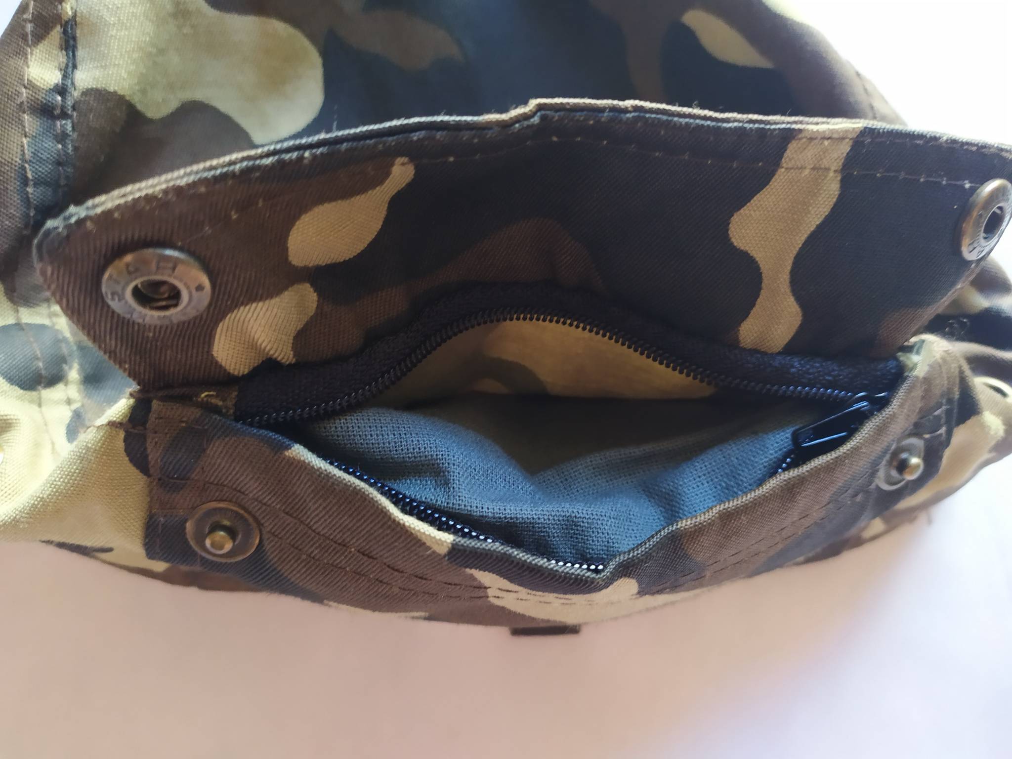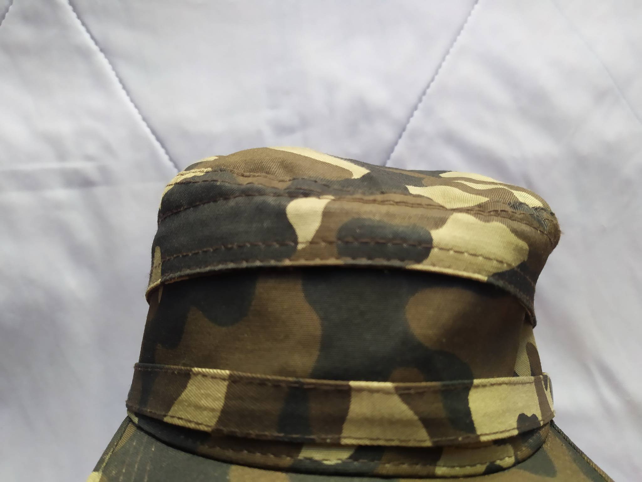 Кепка в камуфляжном окрасе «Дубок» и оригинальной конструкции. Есть мнение, что такие в своё время выдавались генералам. Ткань смесовая средней плотности. Спереди над козырьком есть ремешок на кнопках. Сзади на тыльной части имеется небольшой кармашек, внутри которого на змейке доступ во внутреннюю подкладку кепки (тоже своего типа карман или можно подложить непромокаемую ткань и т.д..). По контуру кепки есть скрытая змейка. Кепку можно превратить в чисто козырёк с открытым верхом. Так, кстати, удобнее стирать. В руках чувствуется достаточно качественный пошив.