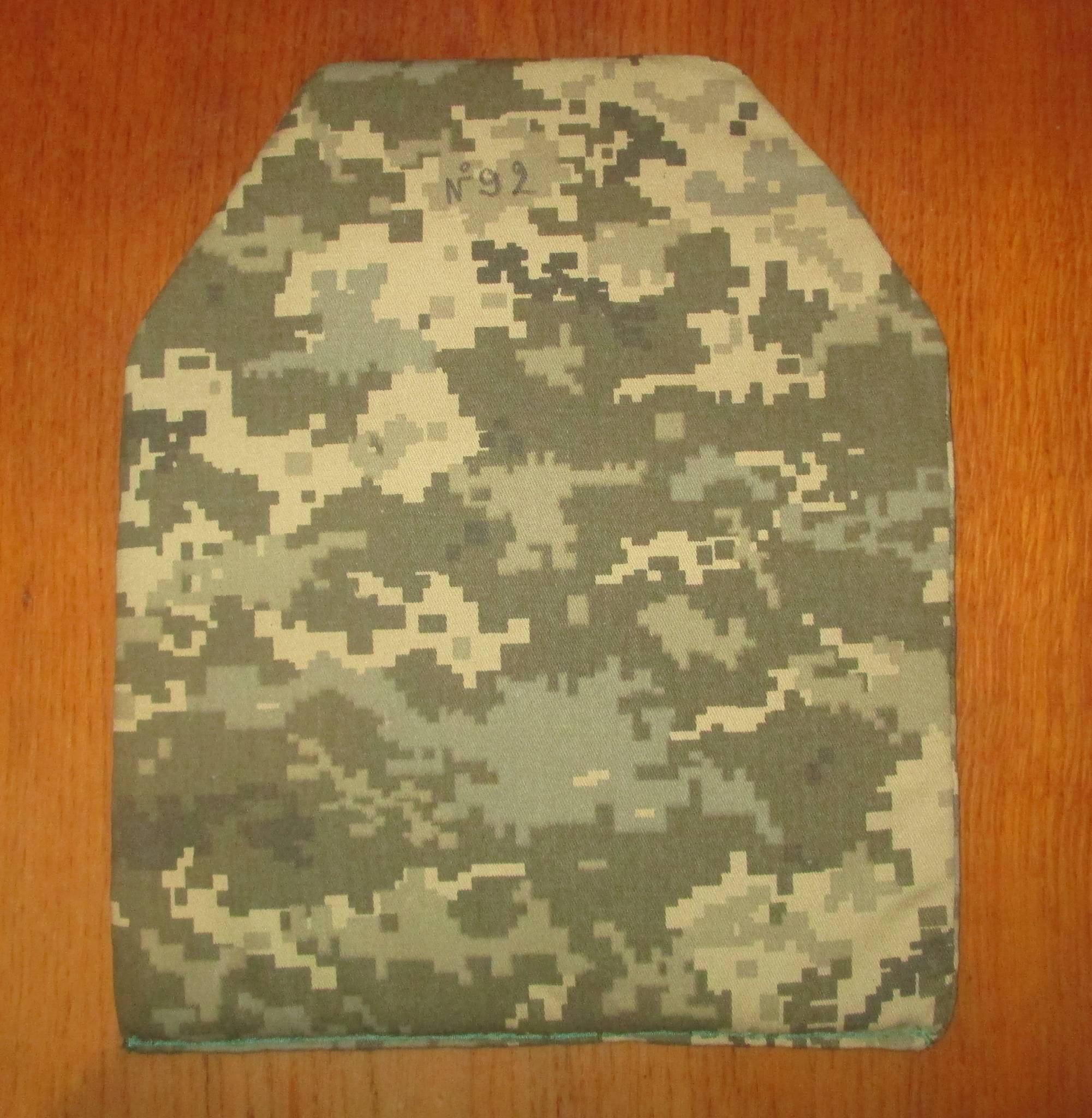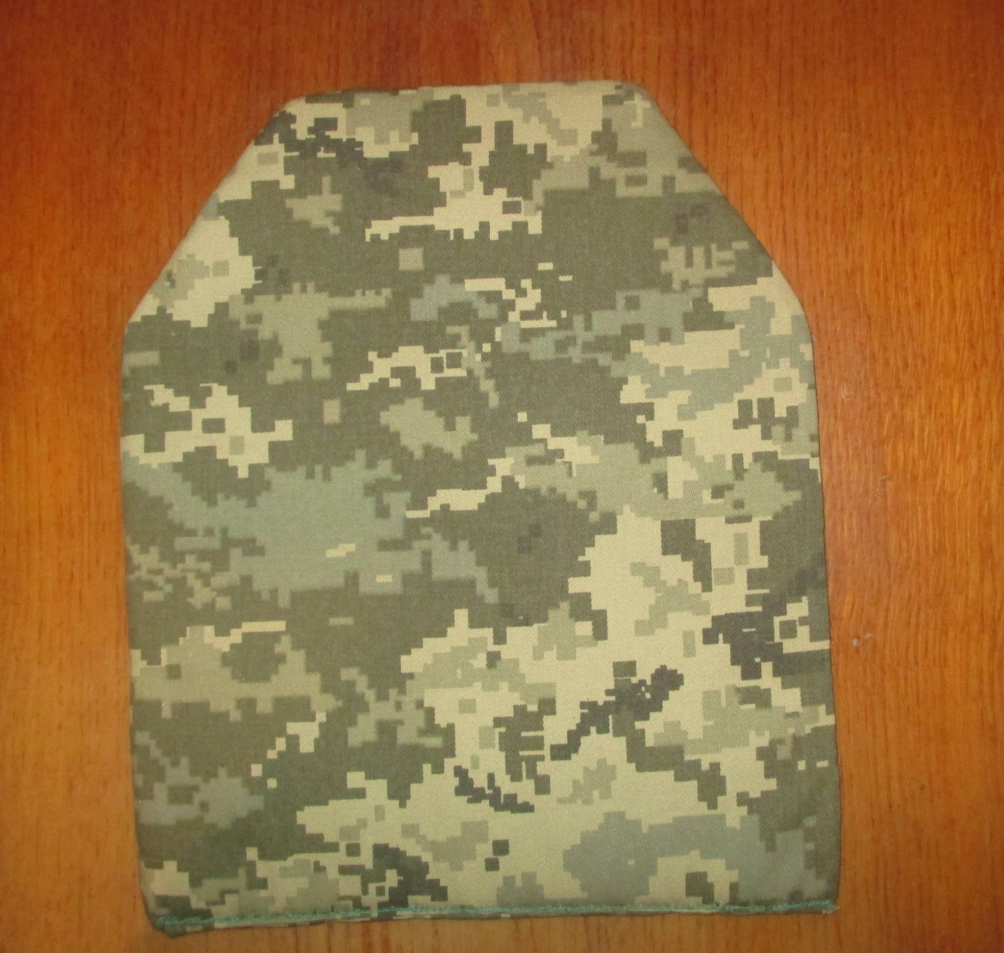 Размер 25,5 на 30 см(толщина около 5-6 мм). Для защиты от легких осколков или усиления уже существующей защиты бронежилета(плитоноски)