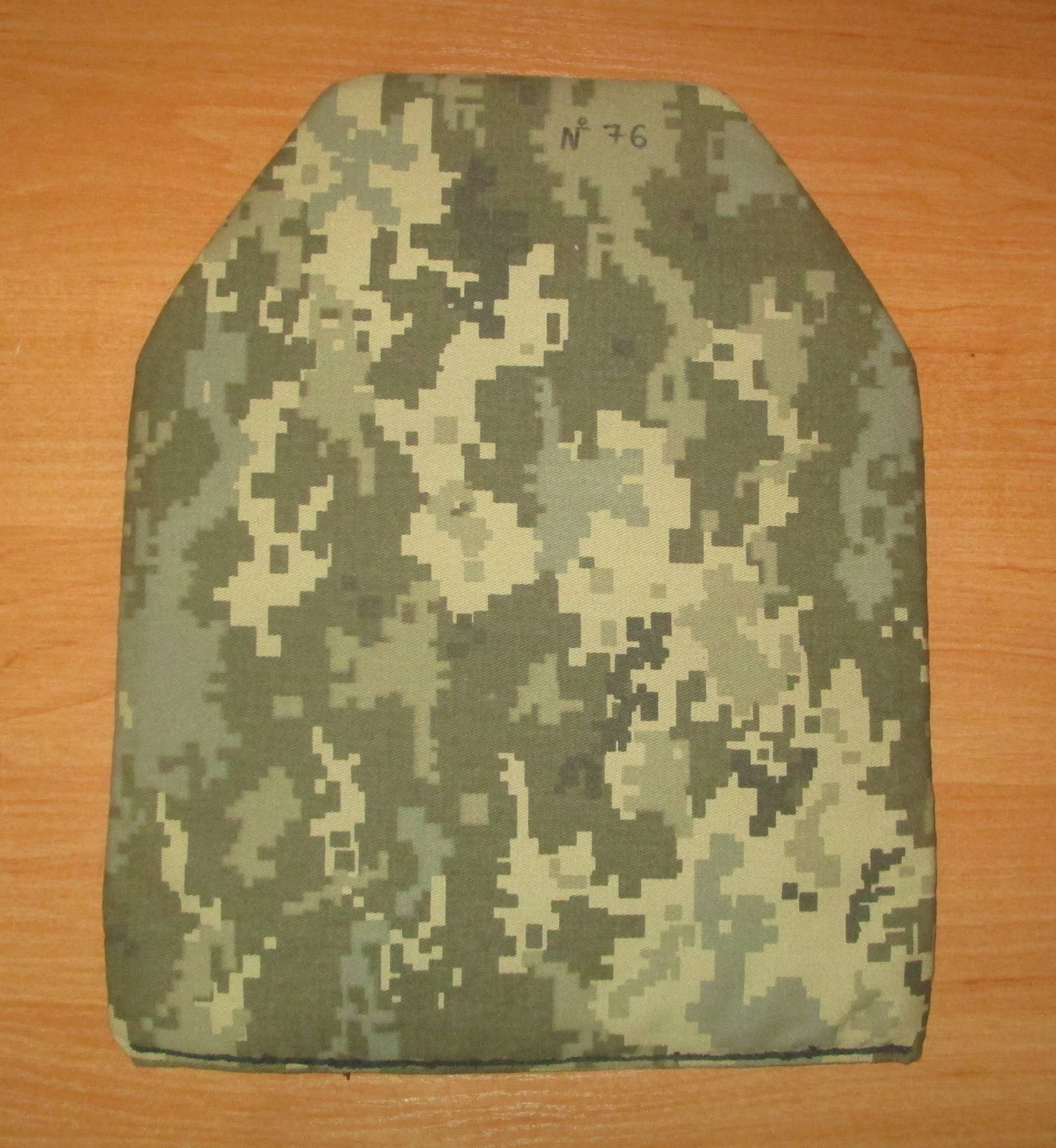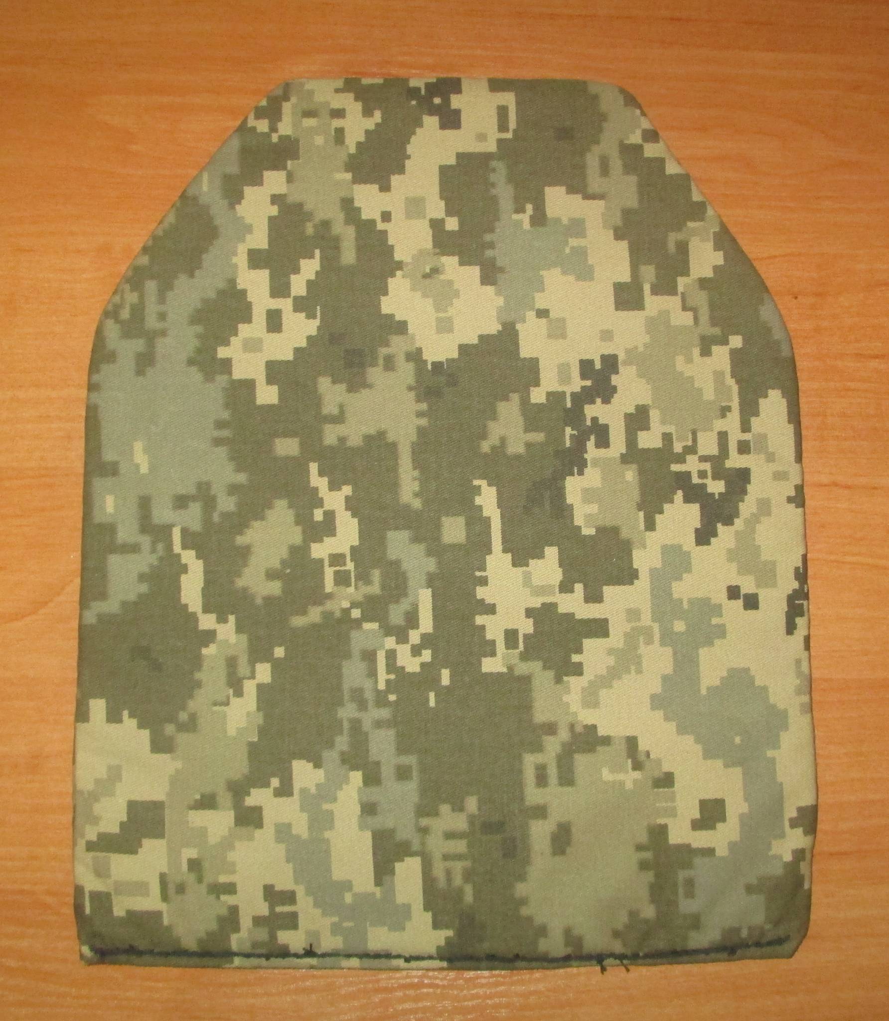 Размер 25 на 30,5 см(толщина около 5-6 мм). Для защиты от легких осколков или усиления уже существующей защиты бронежилета(плитоноски)