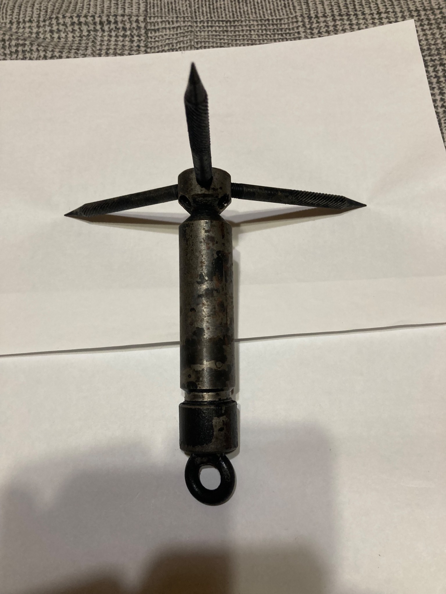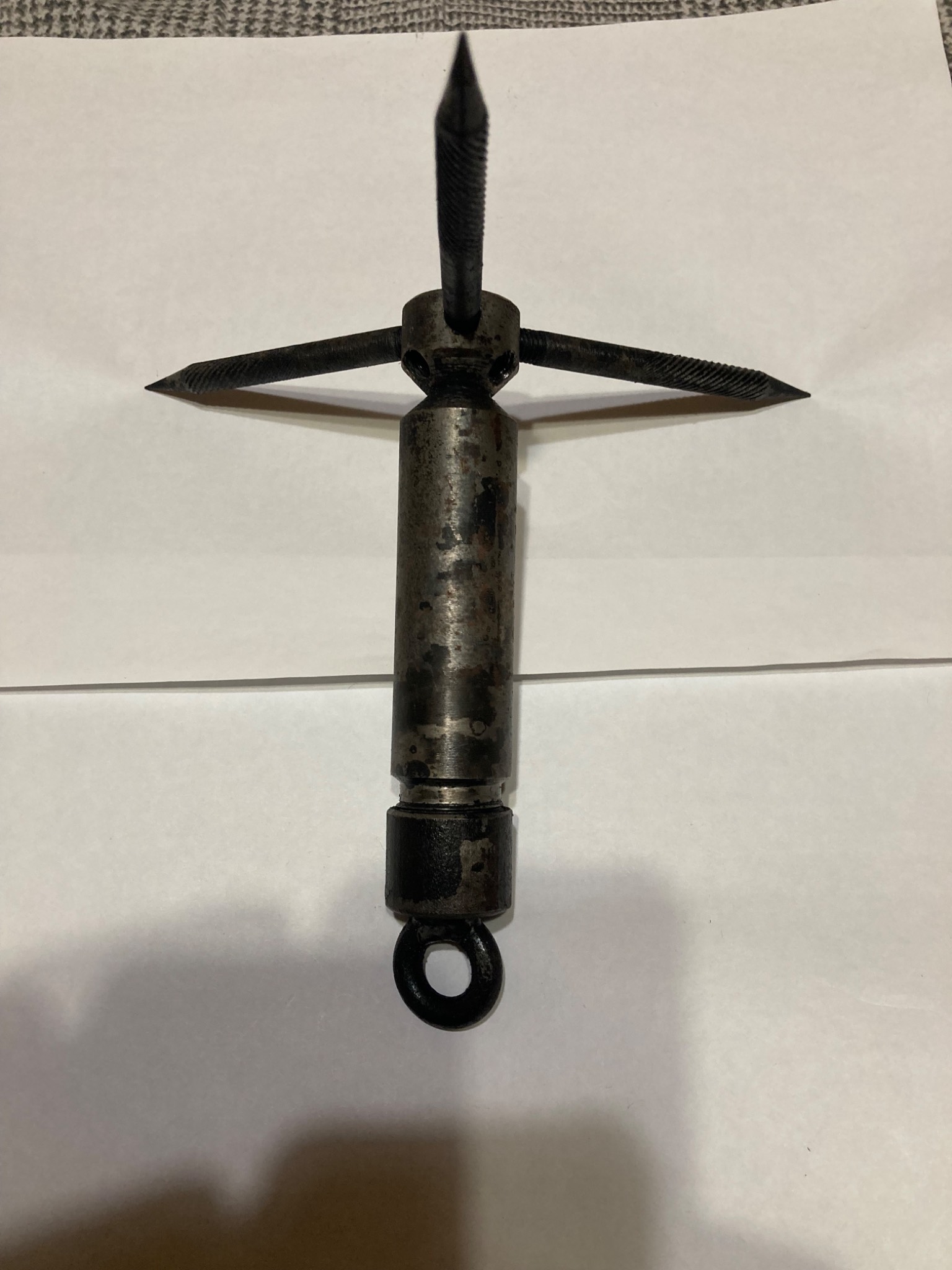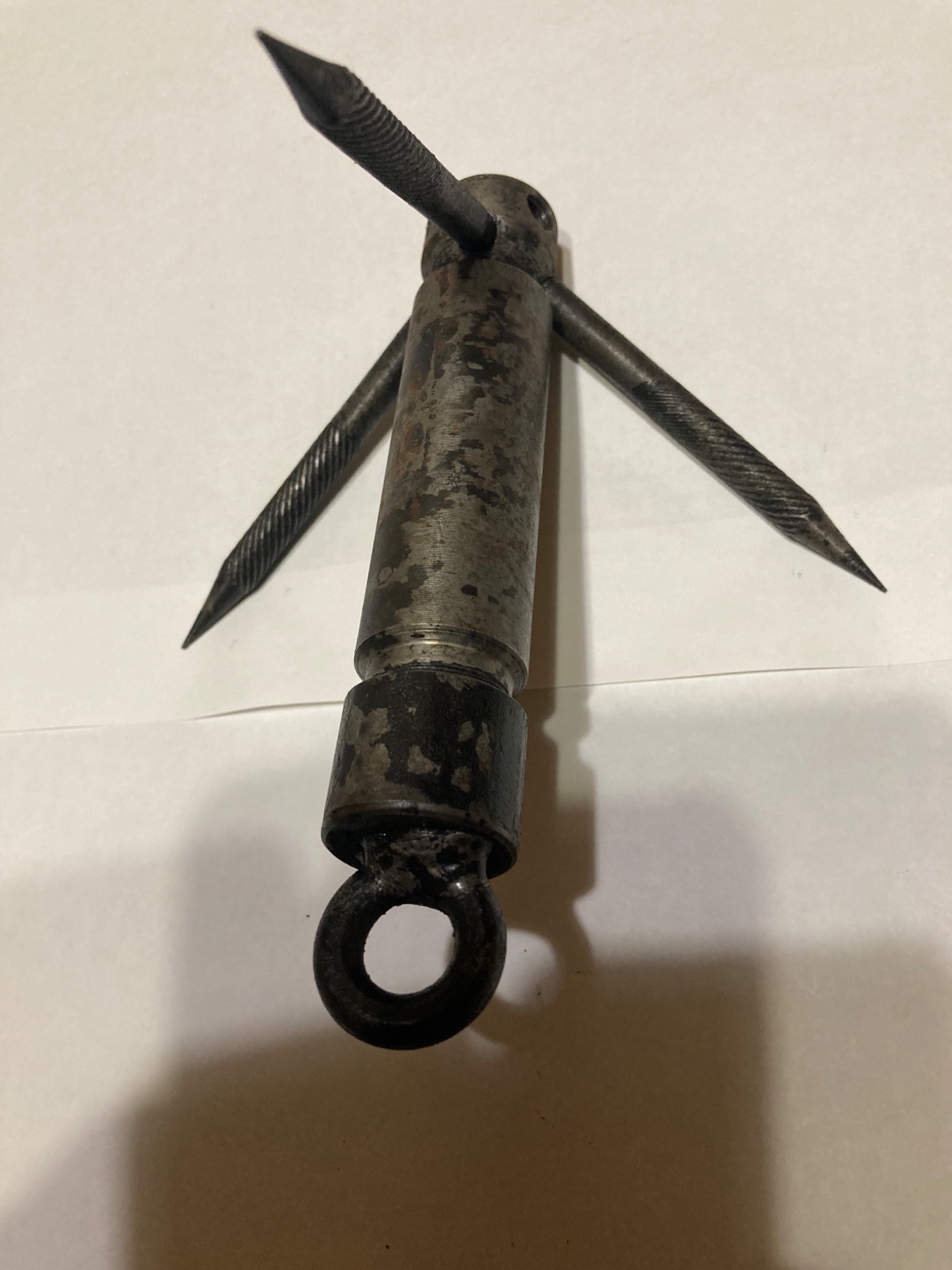 Кішка саперна складна. Шипи складуються вовнутрь. 2 угла установки шипів. 90 та 45 градусів. Довжина кішки 16 см. Вага 400 грам.