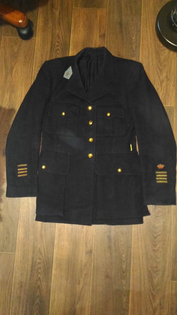 Чорне сукно, одна петлиця та корона пришиті, друга петлиця та корона були знайдені окремо у кармані. Бонусом інші речі, що були знайдені у кармані (на фото). Знаки відзнаки вишиті важкою металізованою ниткою. Клейм, бірок я не знайшов.